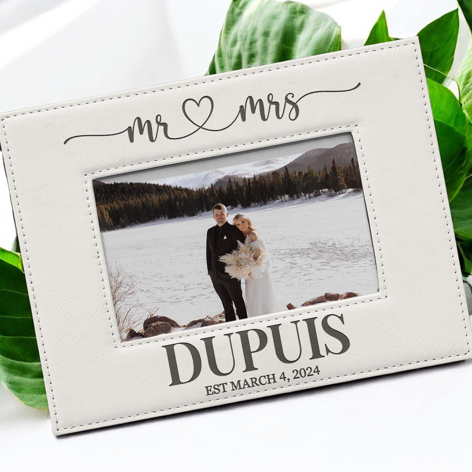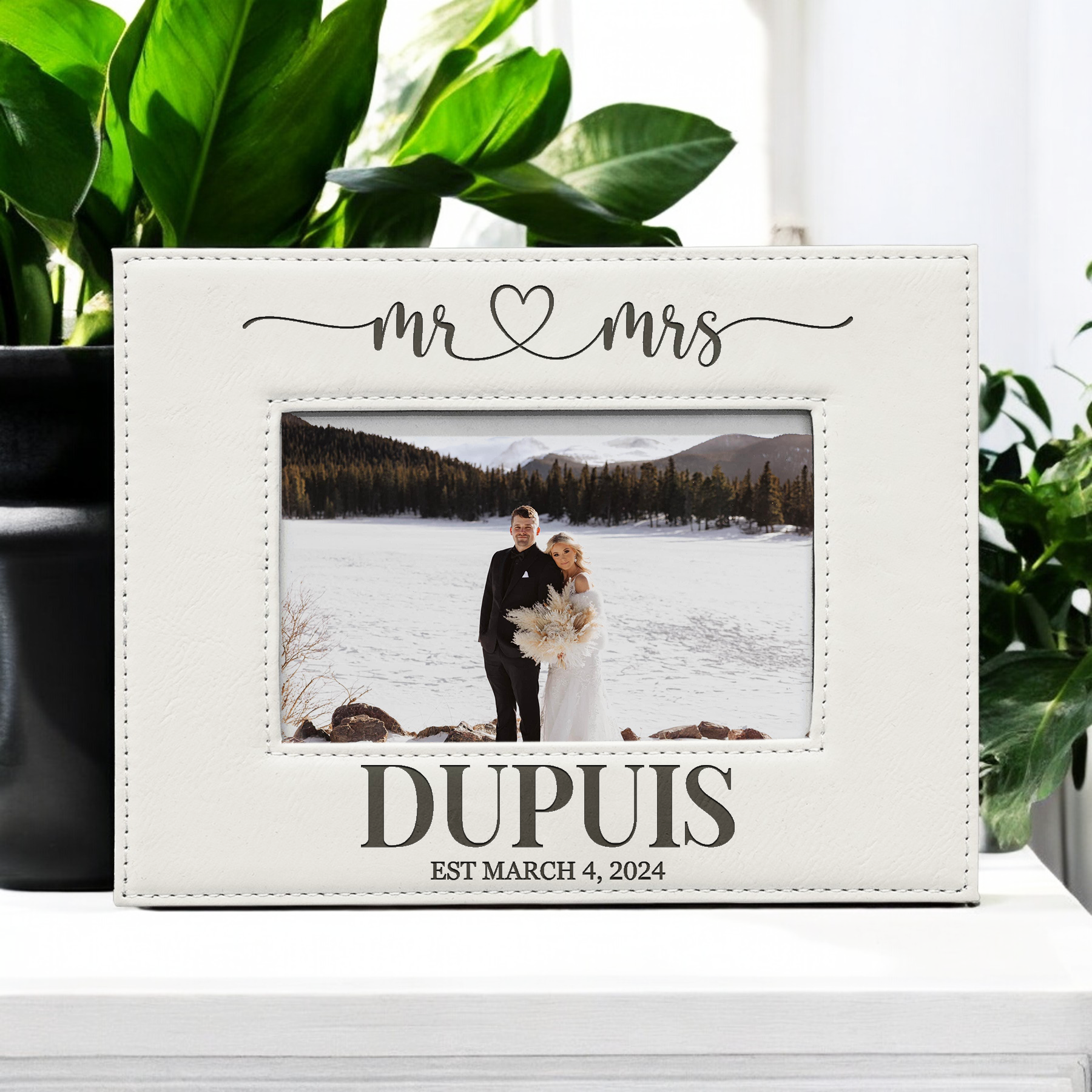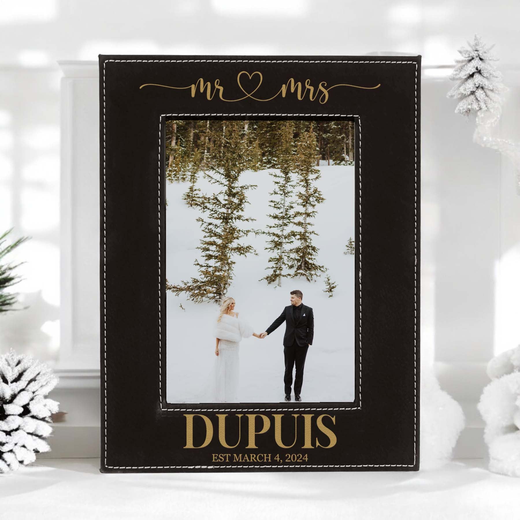 4x6, 5x7, 8x10 Mr & Mrs Personalized Leather Photo Frame