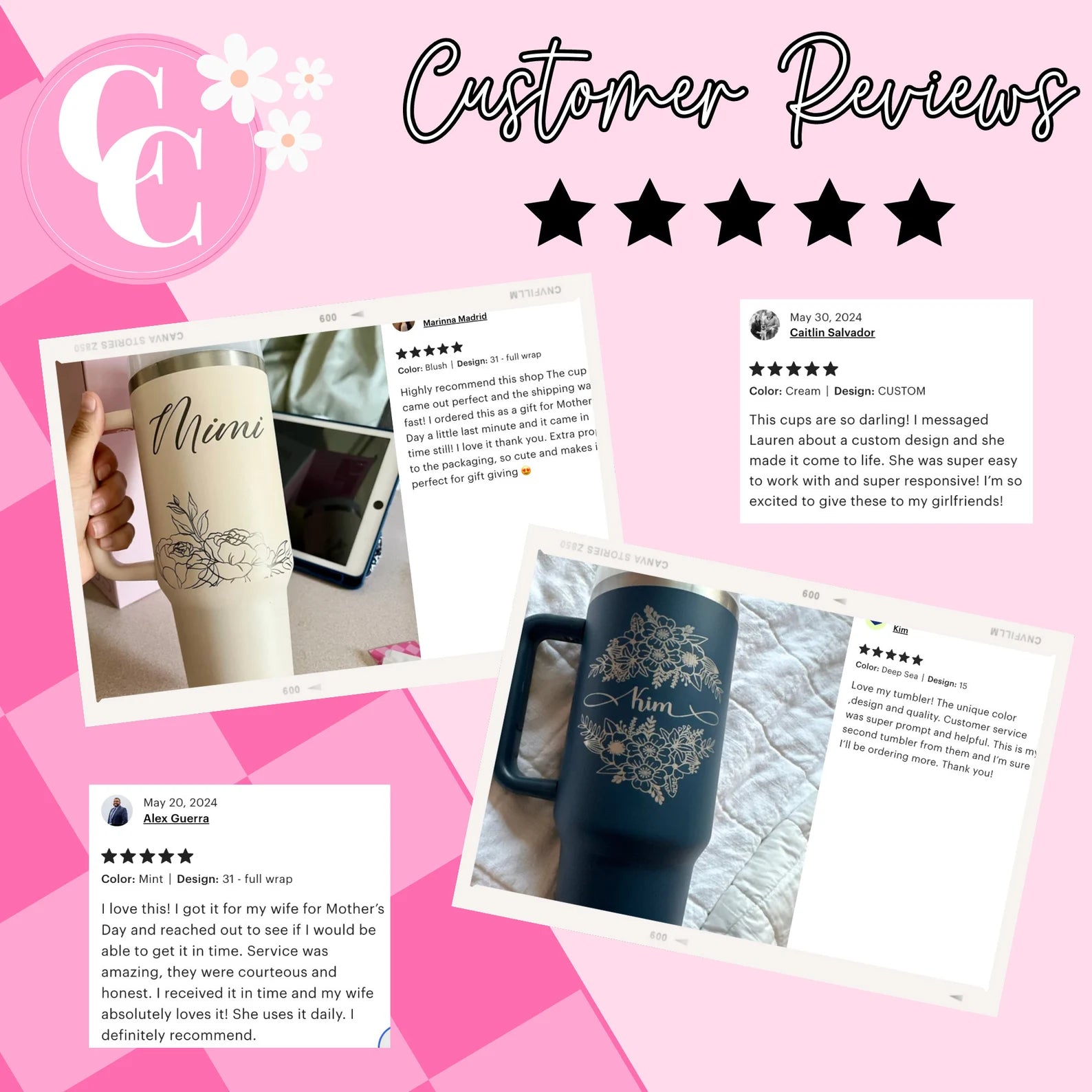 Lastly, the design on the tumbler is professionally laser-engraved. When engraving, the exterior color of the tumbler is removed, revealing the silver stainless steel underneath it.