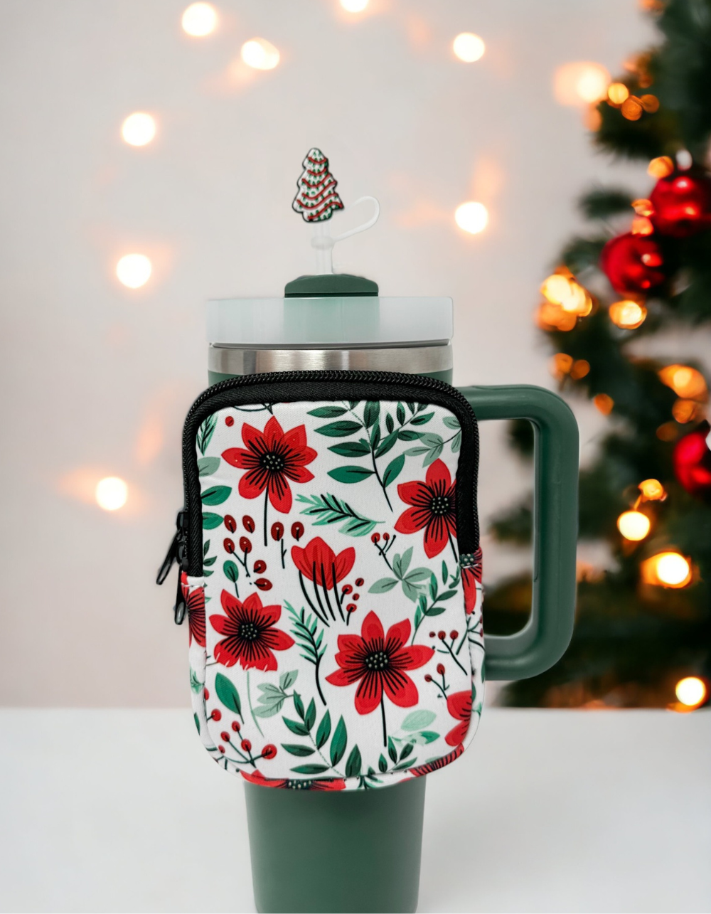 Floral Christmas Neoprene Pouch for 40 OZ Tumbler