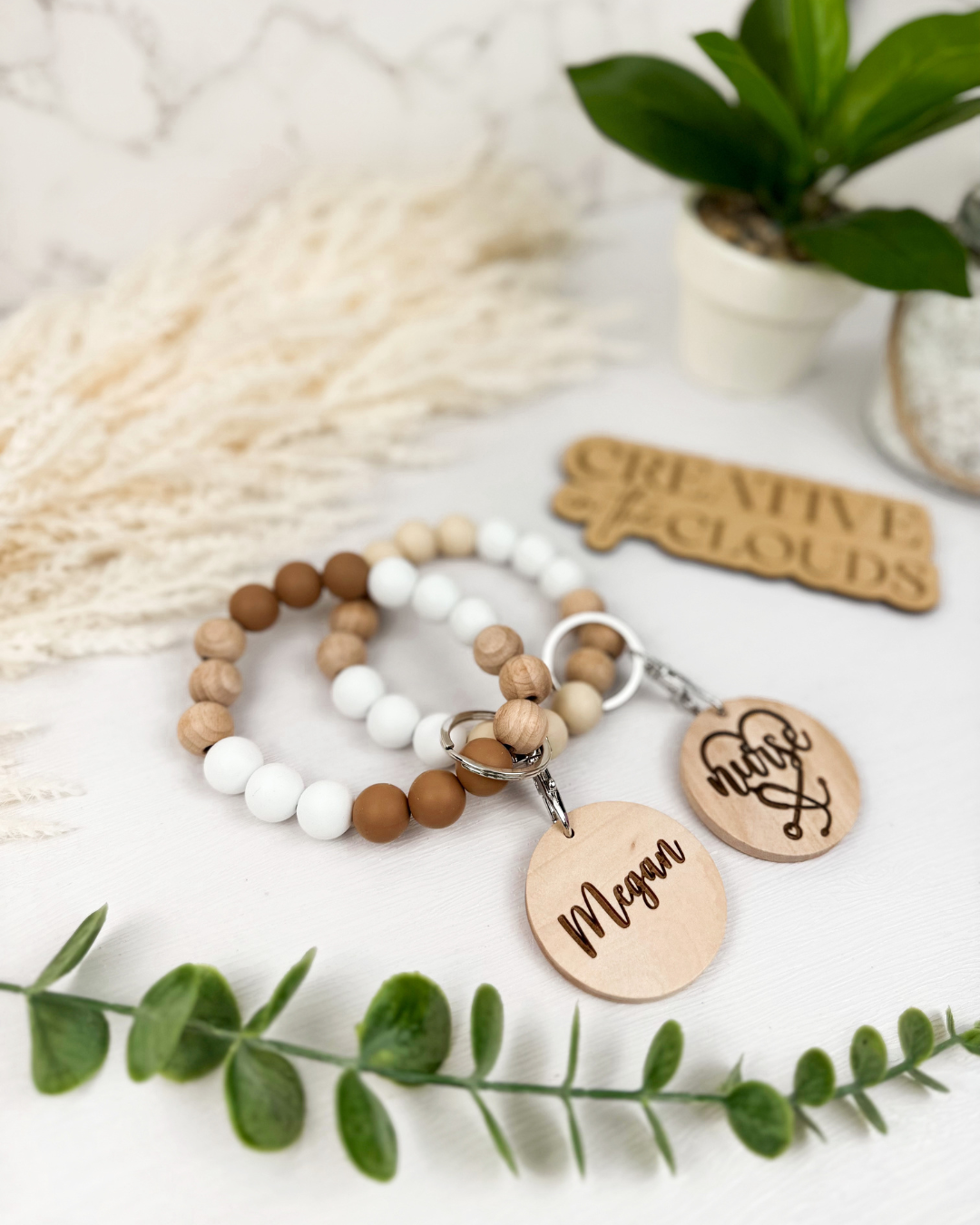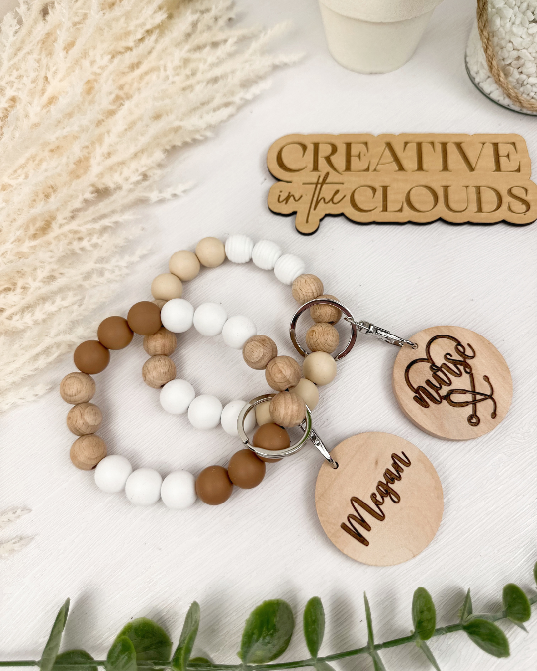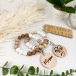 Boho Neutral Silicone Beaded Wristlet with Personalization