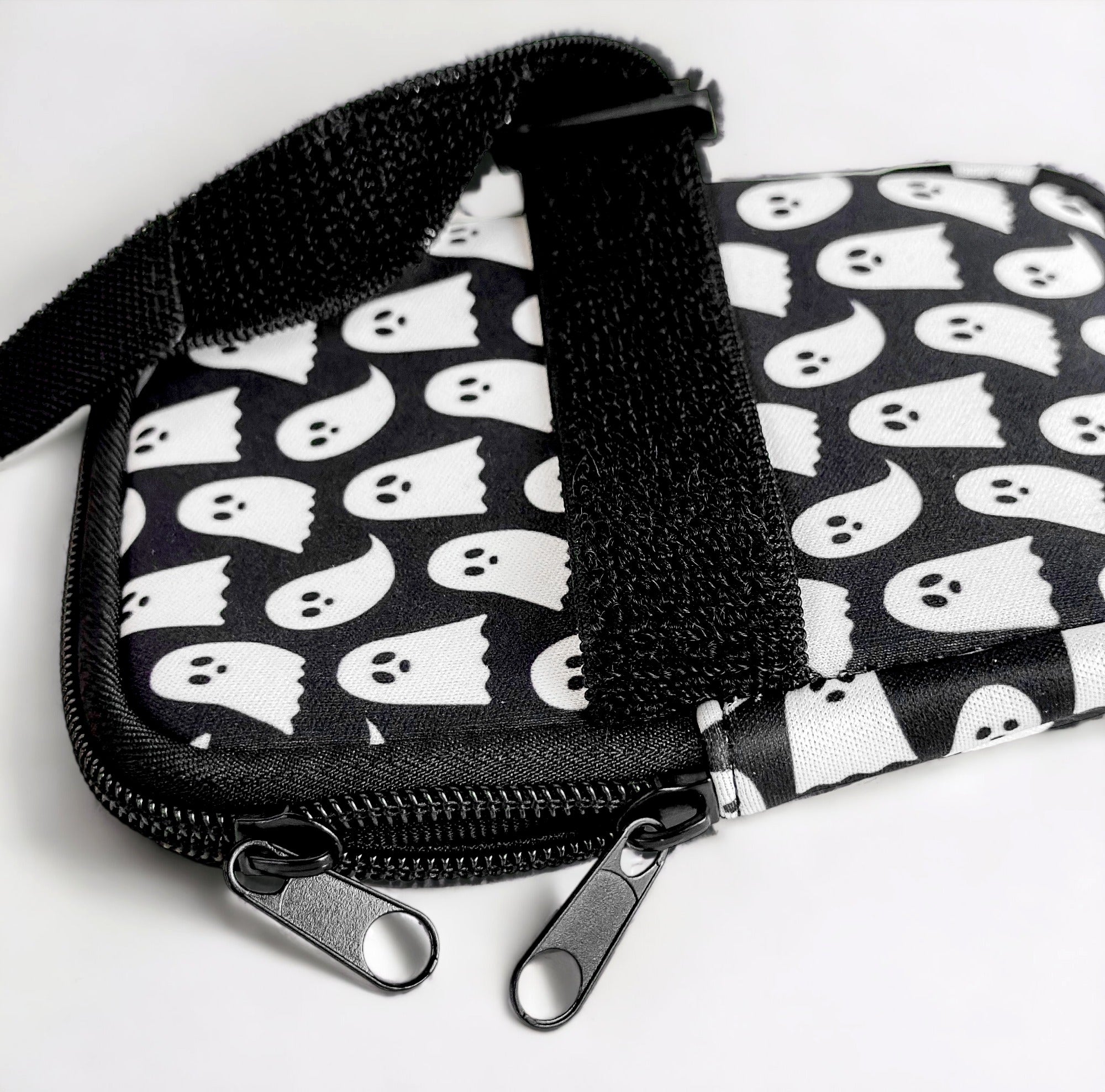 Elevate your tumbler experience with our Ghost Tumbler Zipper Pouch. This is the perfect accessory for halloween. Designed to attach securely to tumblers using an adjustable velcro strap, it offers a convenient and stylish solution for carrying essentials such as phones, wallets, and keys during walks or outdoor activities.