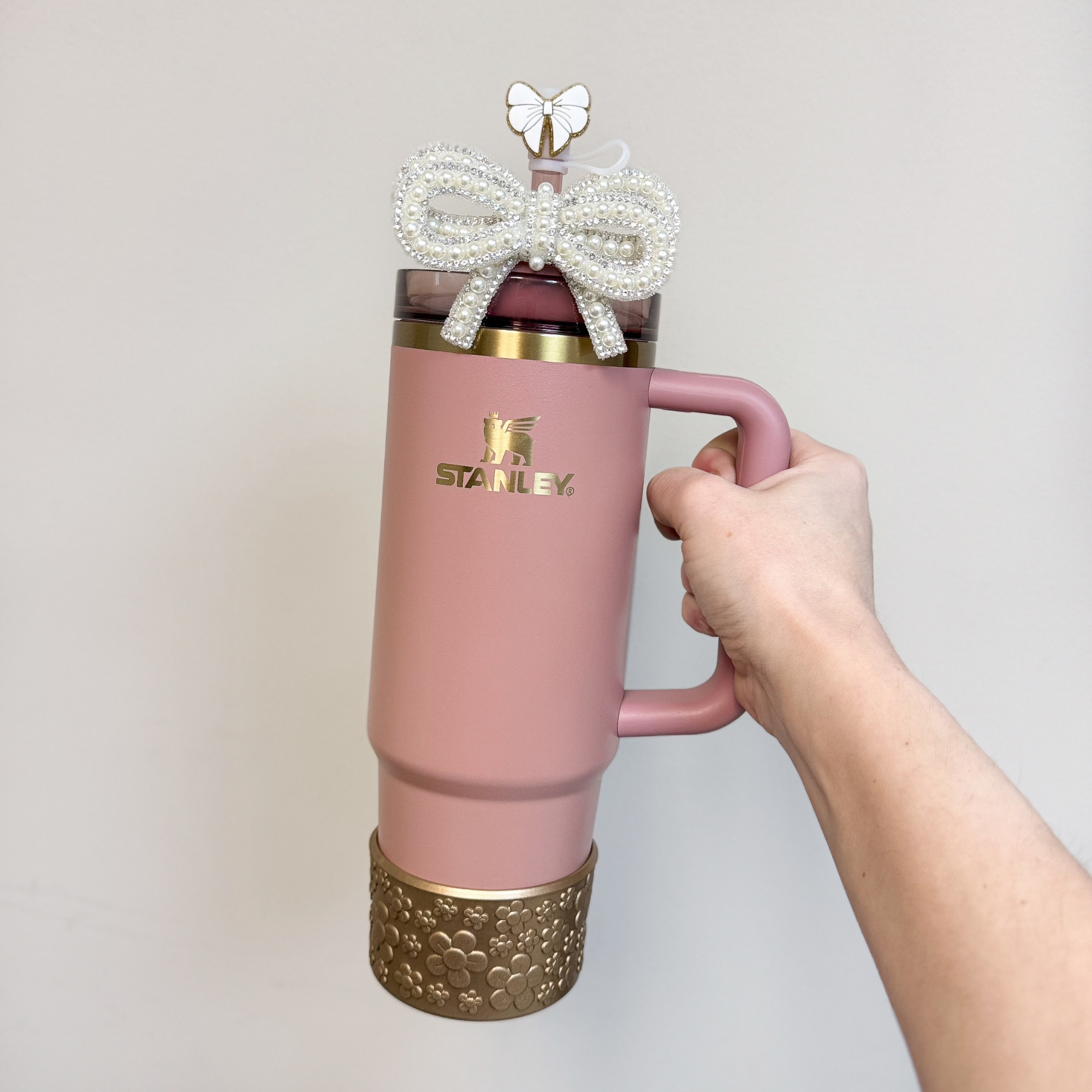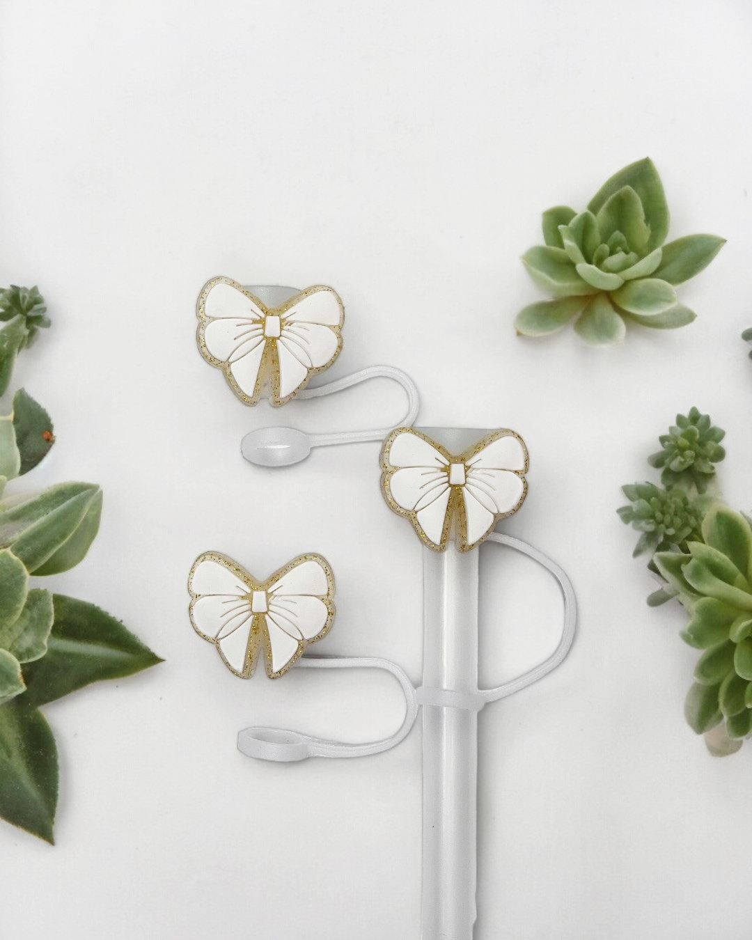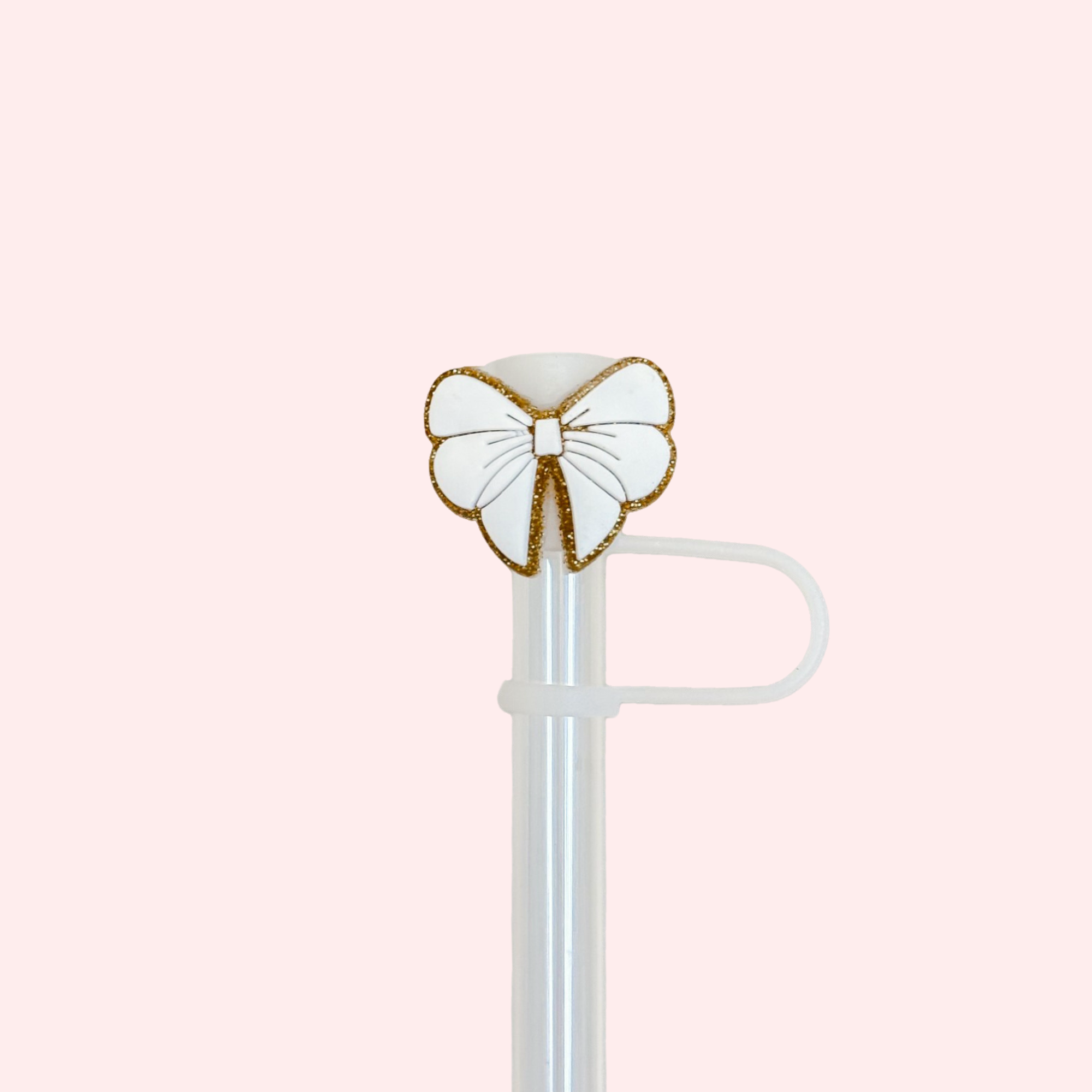 Gold White Bow Straw Topper - 10 MM for Thick Straws