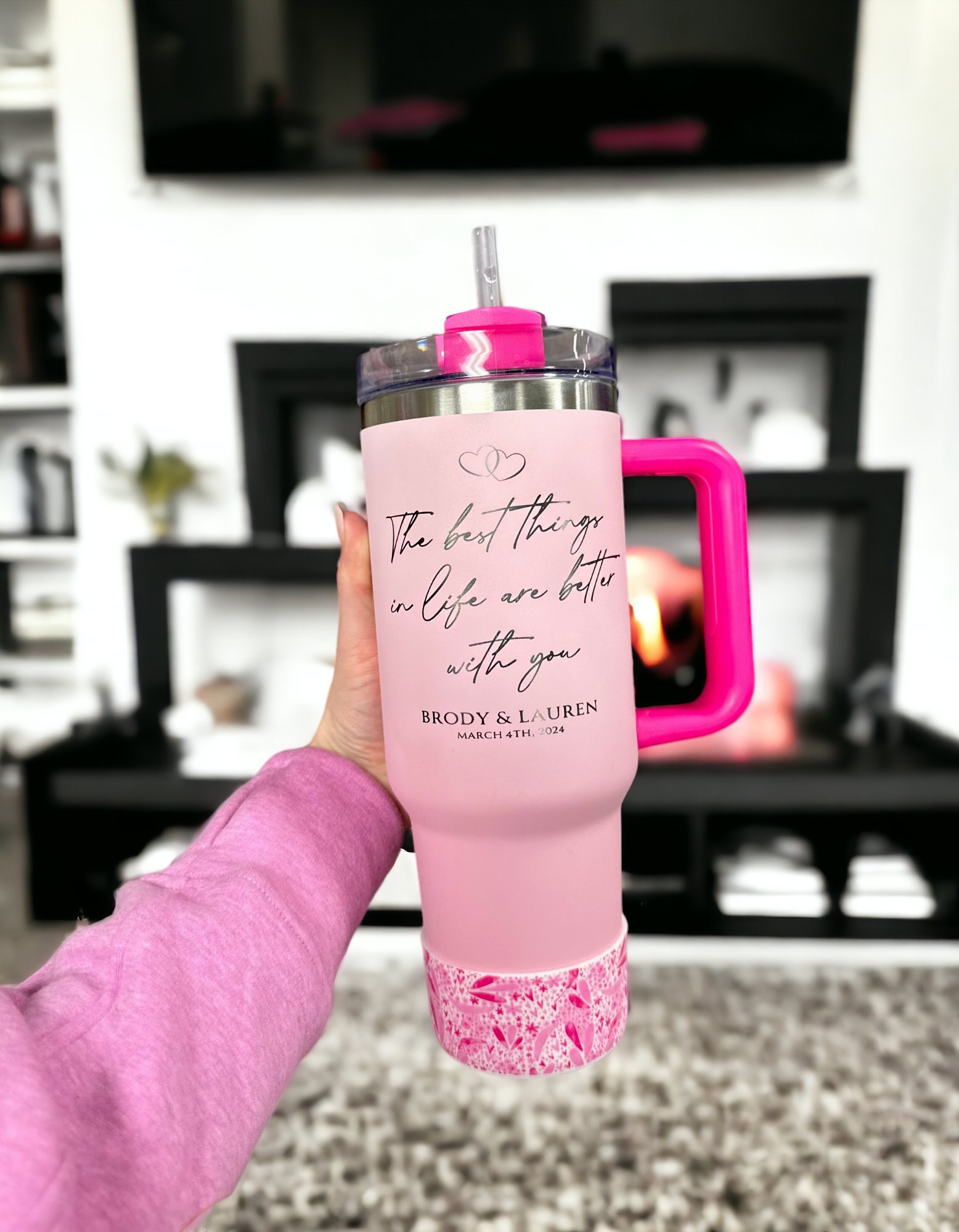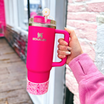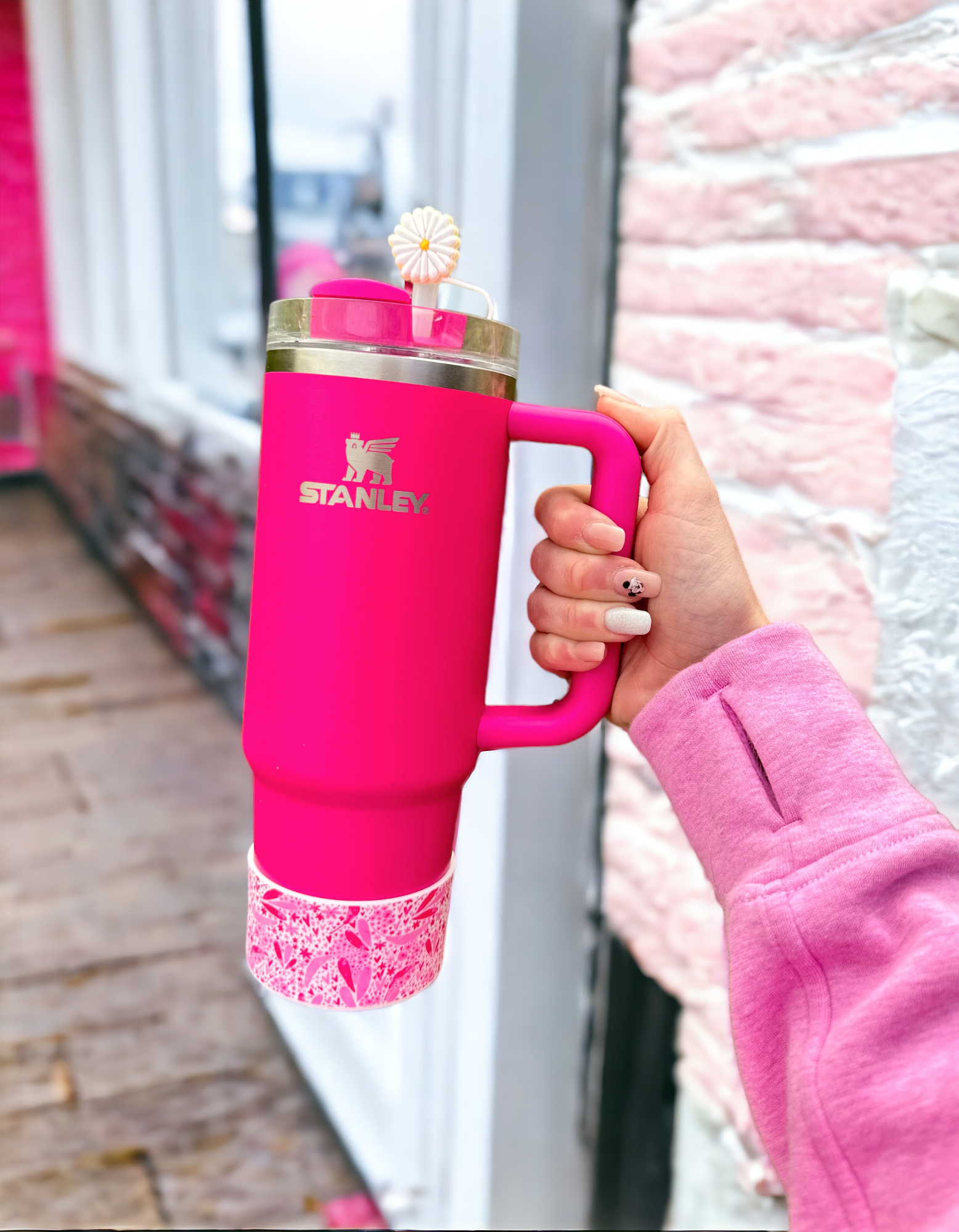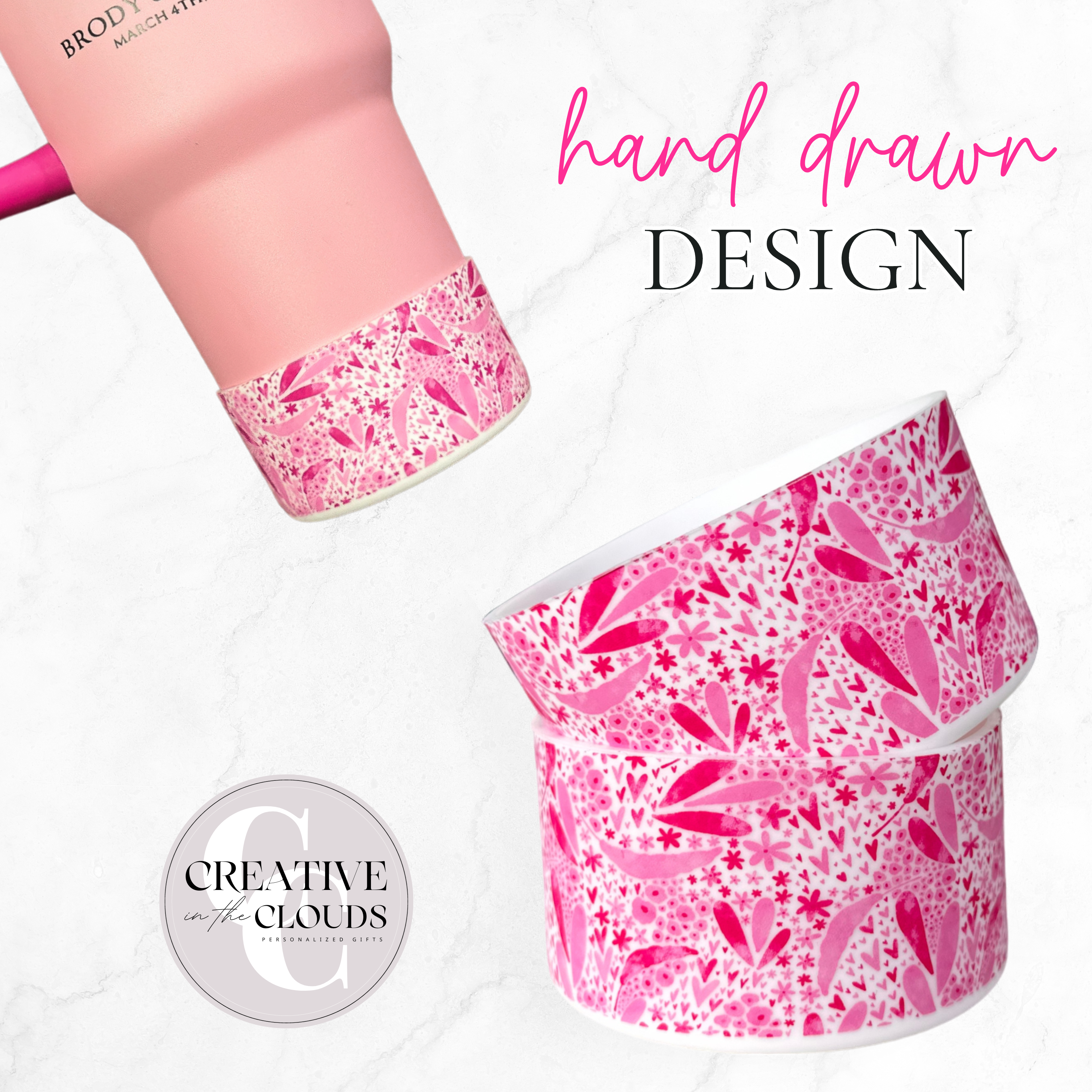 Hot Pink Floral Heart Silicone Boot for Tumbler