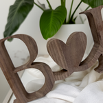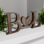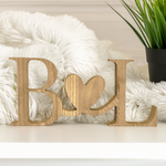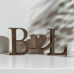 Add a touch of warmth and personality to your home décor with our handcrafted freestanding initial sign, featuring two connected letters joined by a heart. Perfect for wedding décor, engagement gifts, nursery shelves, or simply adding a personal touch to any room.