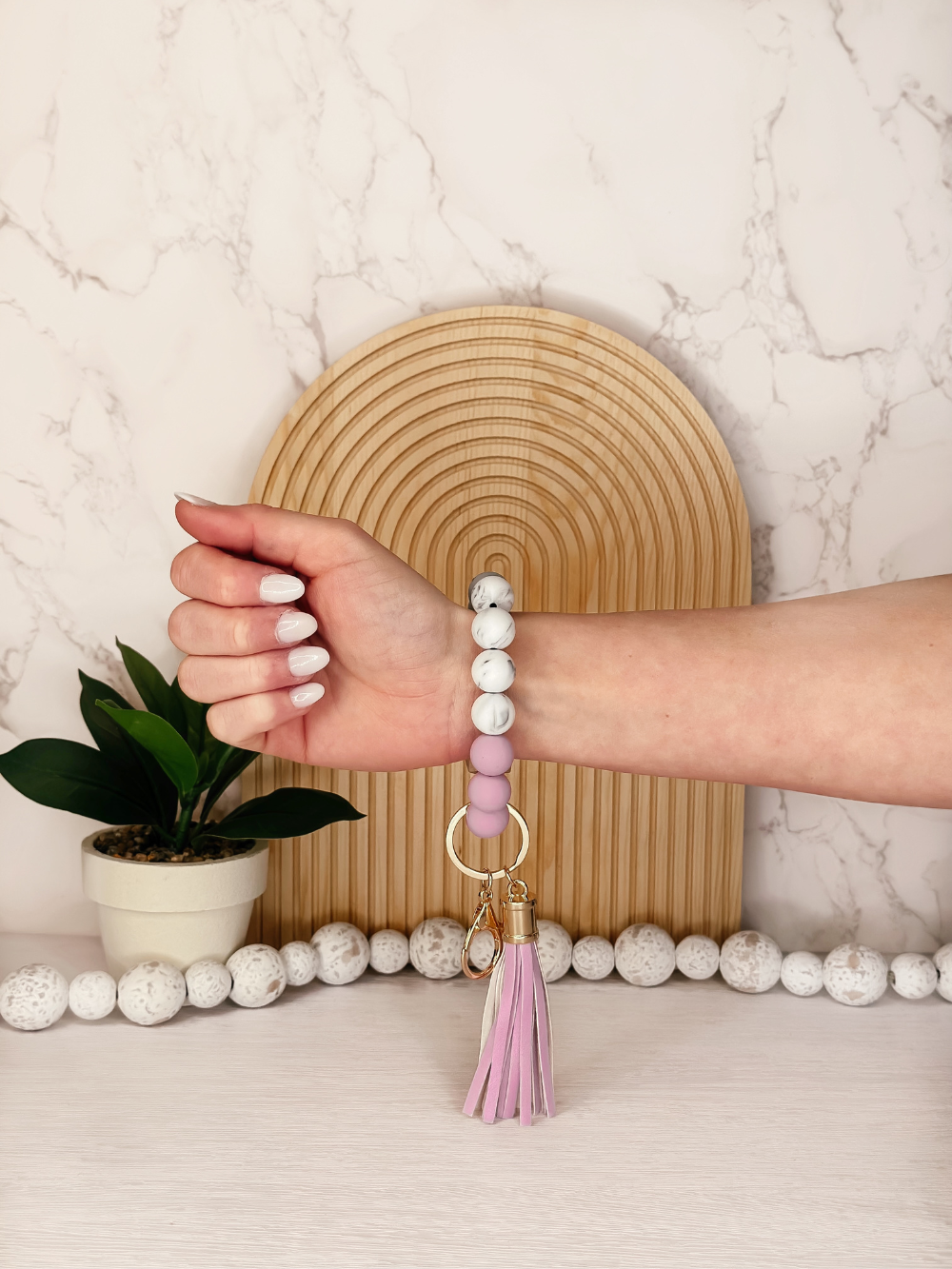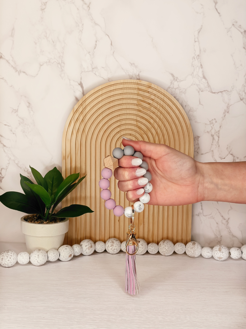Our silicone beaded wristlets are not only fashionable, but versatile and practical. Whether you are pushing a cart while shopping in the mall, or have a ton of shopping bags in your hand, while not losing your house and car keys, you can do ALL the things with ease! The beads used in these wristlets are made from high-quality silicone, which is durable and resistant to wear and tear. The bracelet is designed to be worn around the wrist and is stretchable, making it easy to put on and take off.
