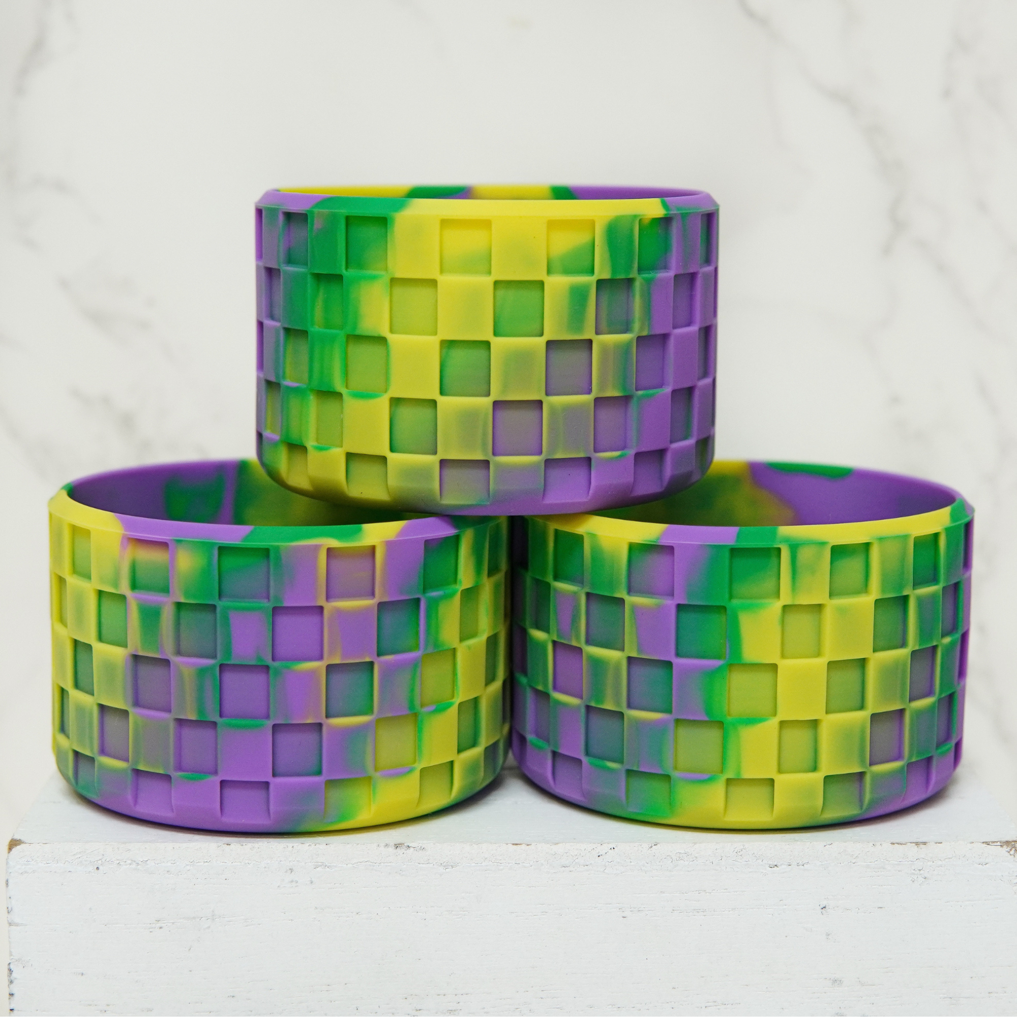 Mardi Gras Checkered Silicone Protective Boot for Tumbler