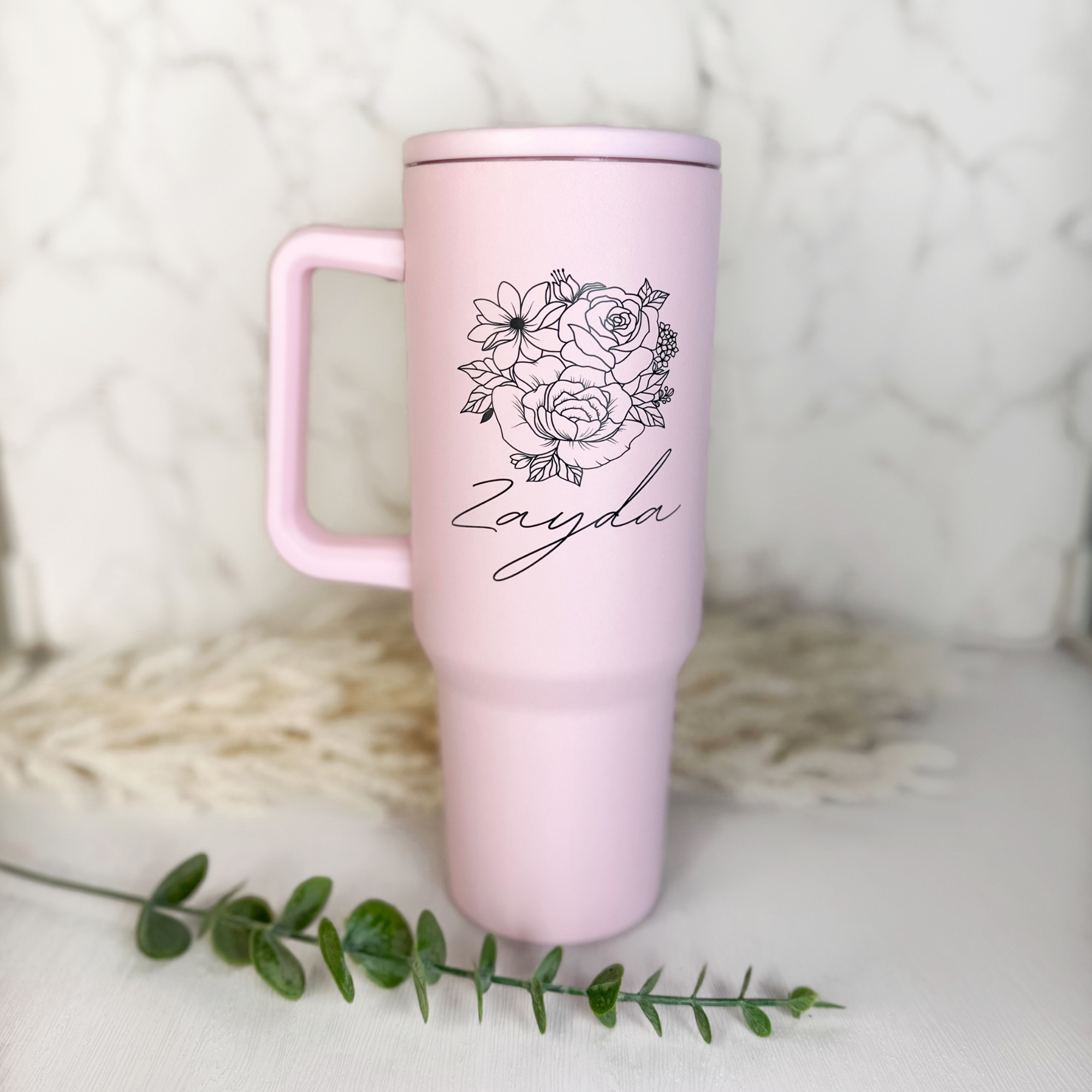 Modern Personalized 40oz Tumbler with Handle & Straw