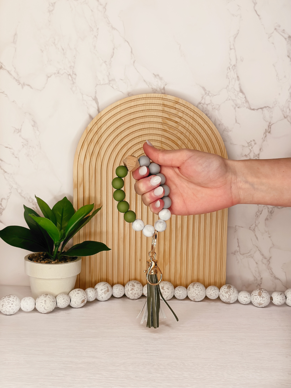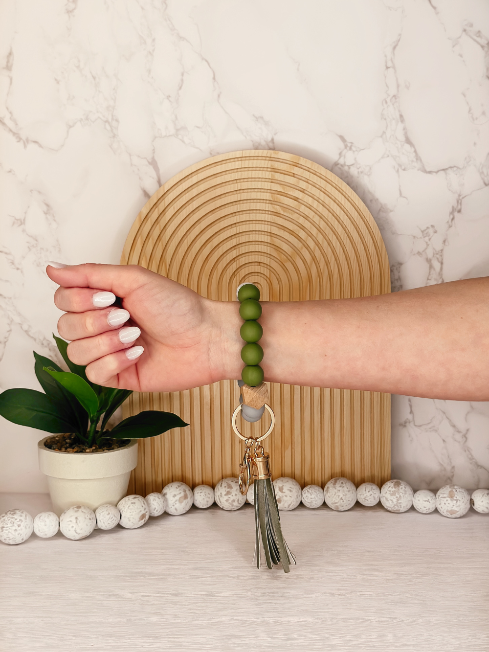Our silicone beaded wristlets are not only fashionable, but versatile and practical. Whether you are pushing a cart while shopping in the mall, or have a ton of shopping bags in your hand, while not losing your house and car keys, you can do ALL the things with ease! The beads used in these wristlets are made from high-quality silicone, which is durable and resistant to wear and tear. The bracelet is designed to be worn around the wrist and is stretchable, making it easy to put on and take off.