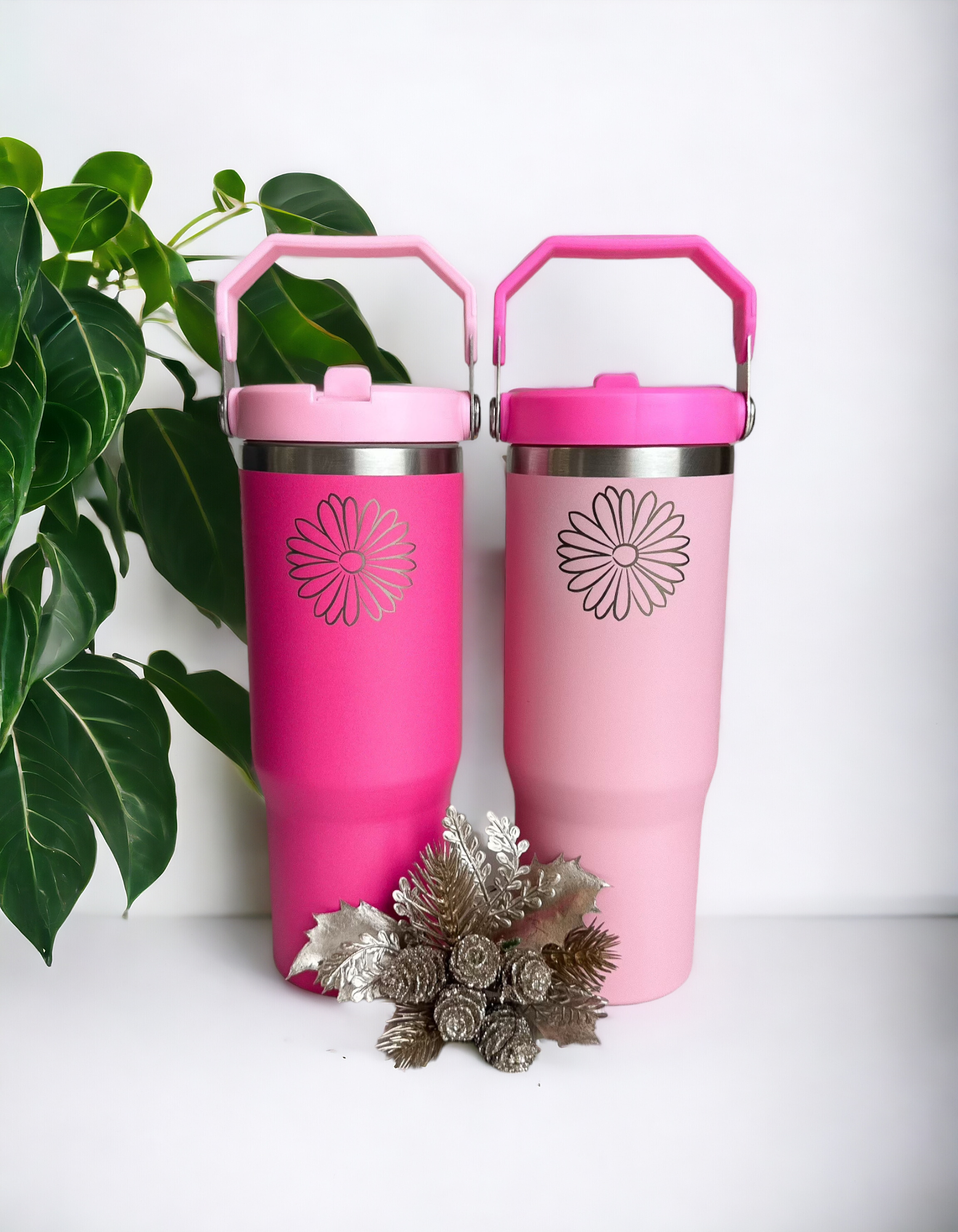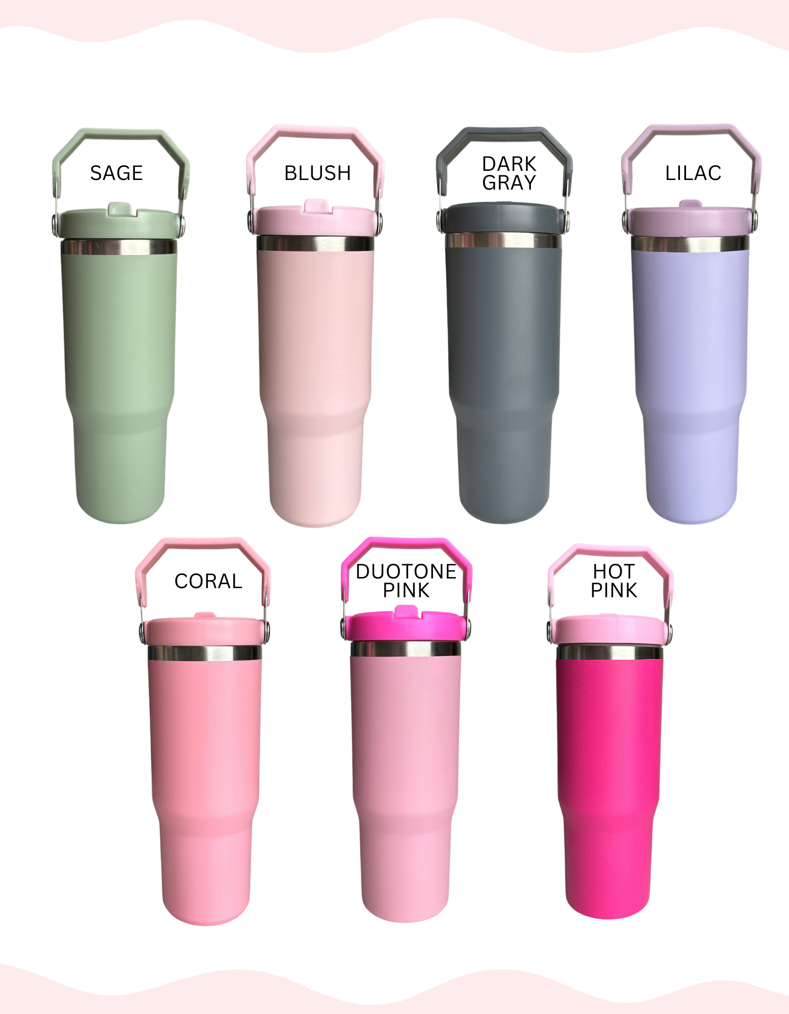 Our 30 oz Tumbler, featuring a sleek surface and a handle, which makes it comfortable to hold and very easy to fit into any cup holders, side pockets of backpacks, tote bags, and almost anywhere! These are perfect for your children in school!
