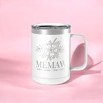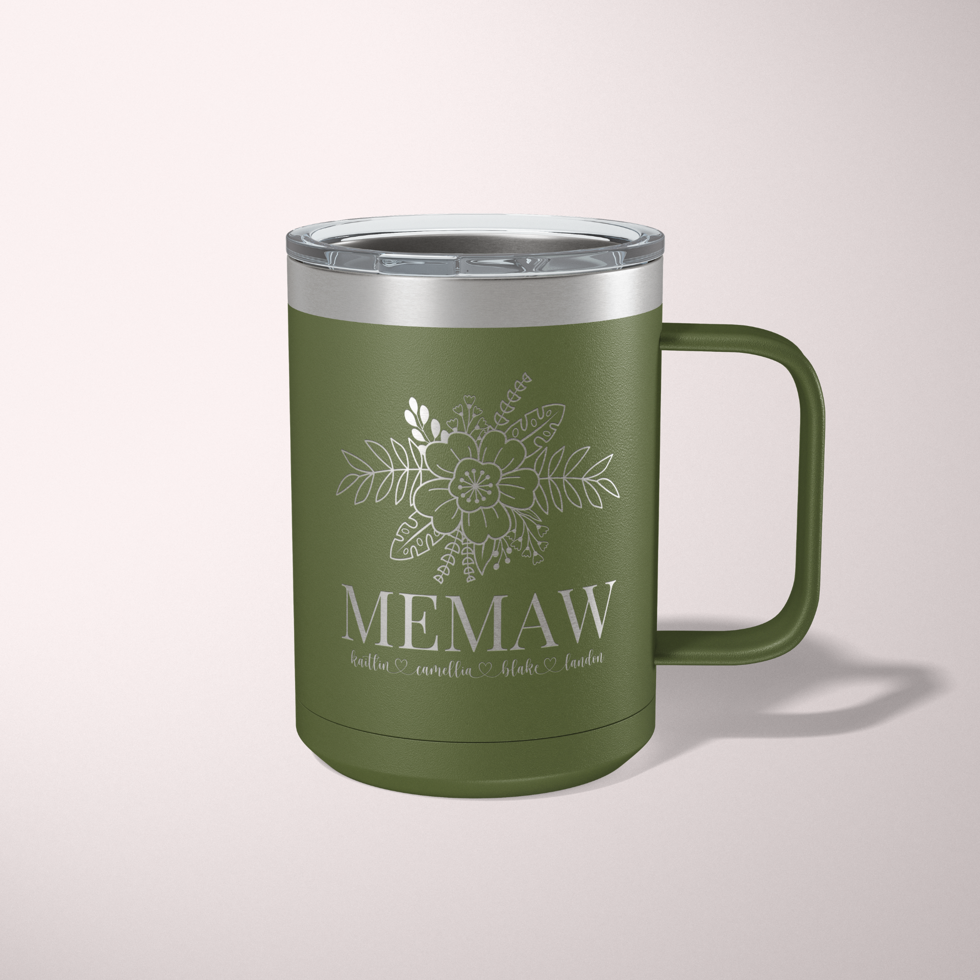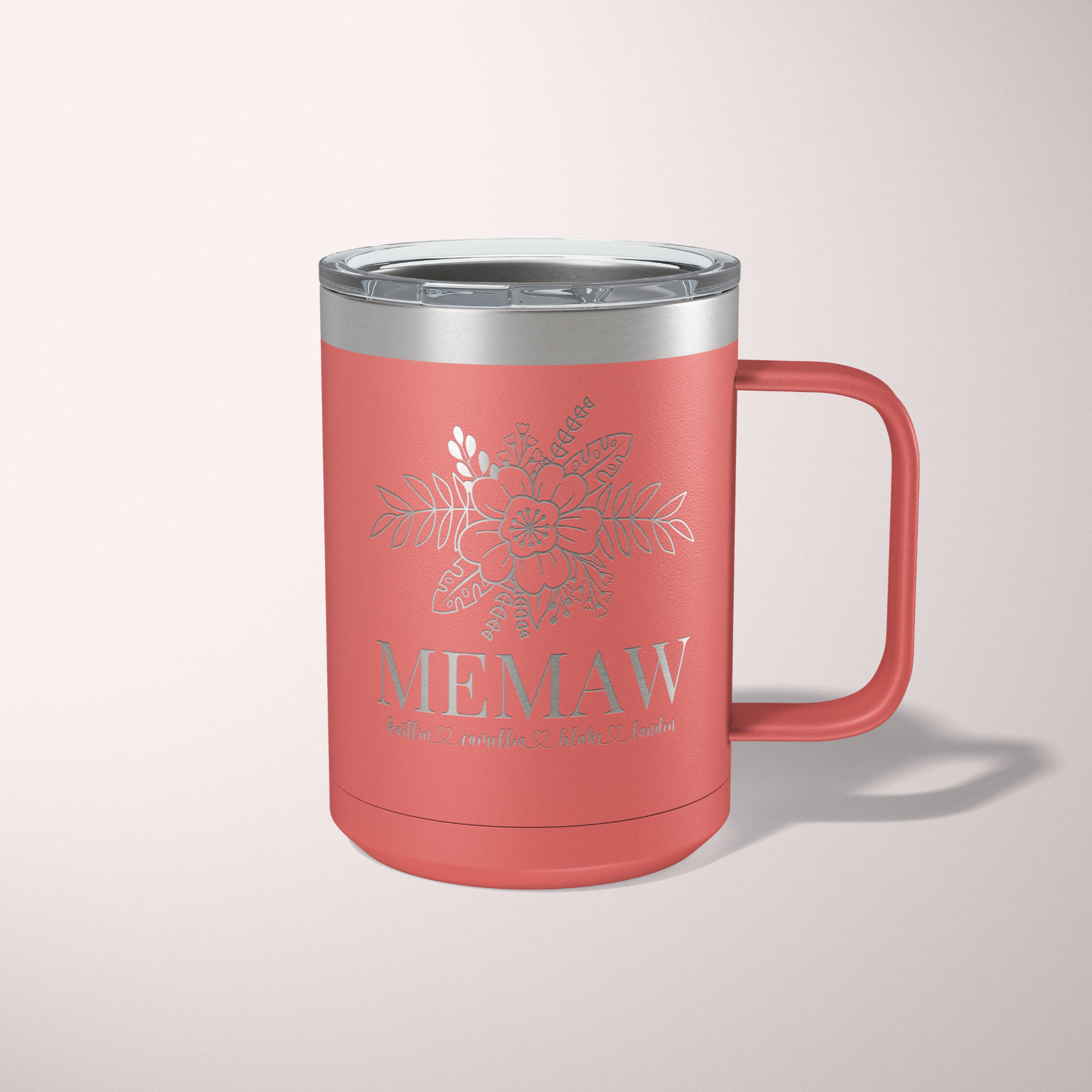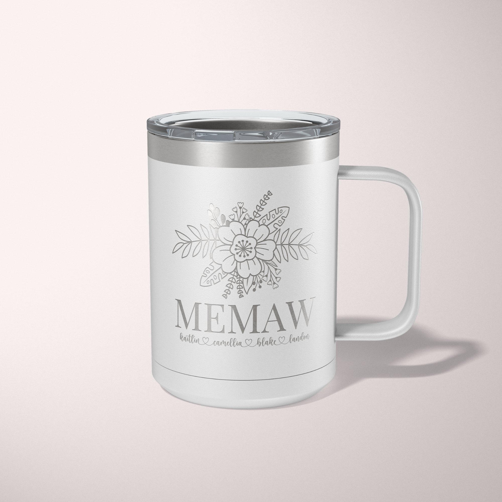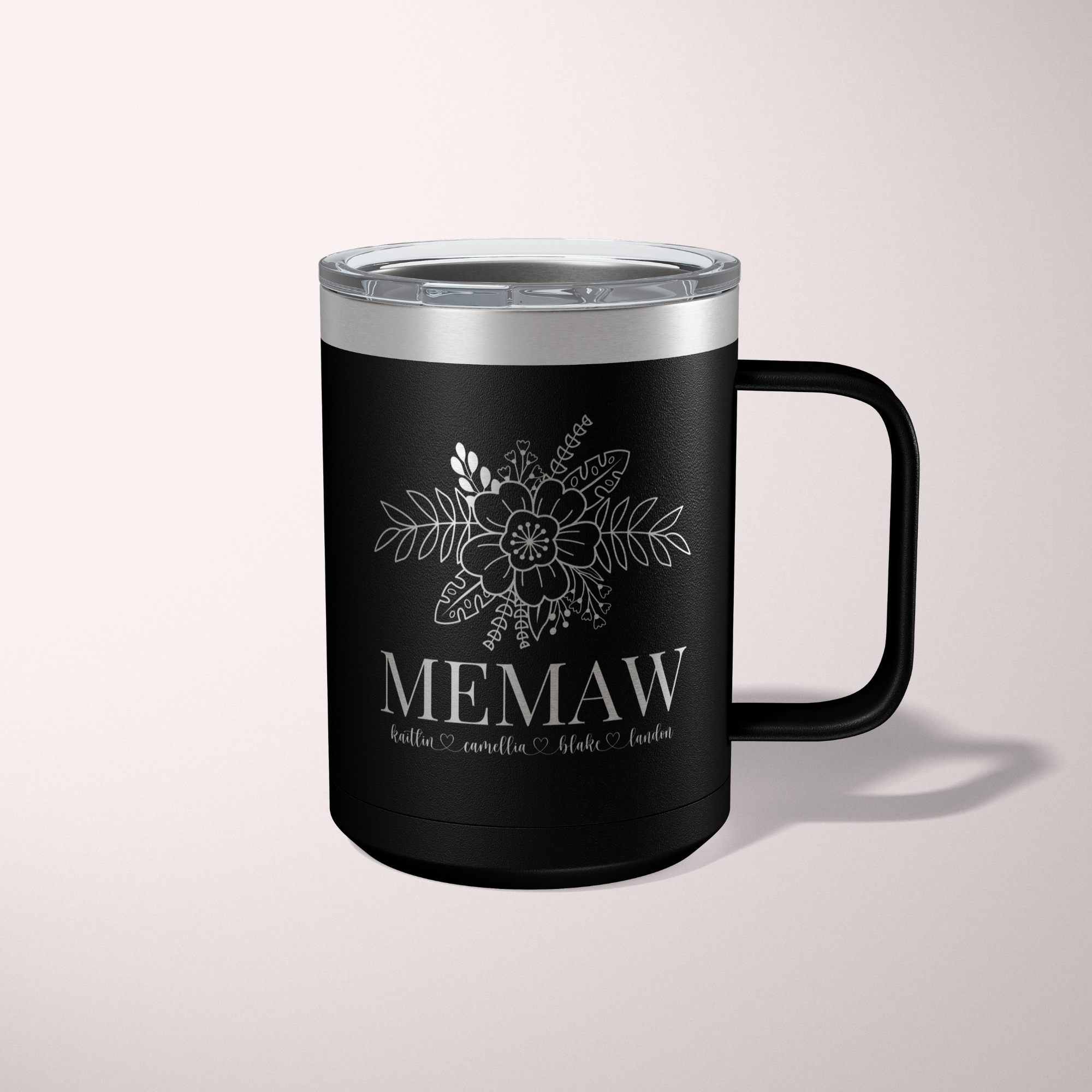 Personalized Floral Grandma Travel Coffee Camp Mug with Grandkids Names