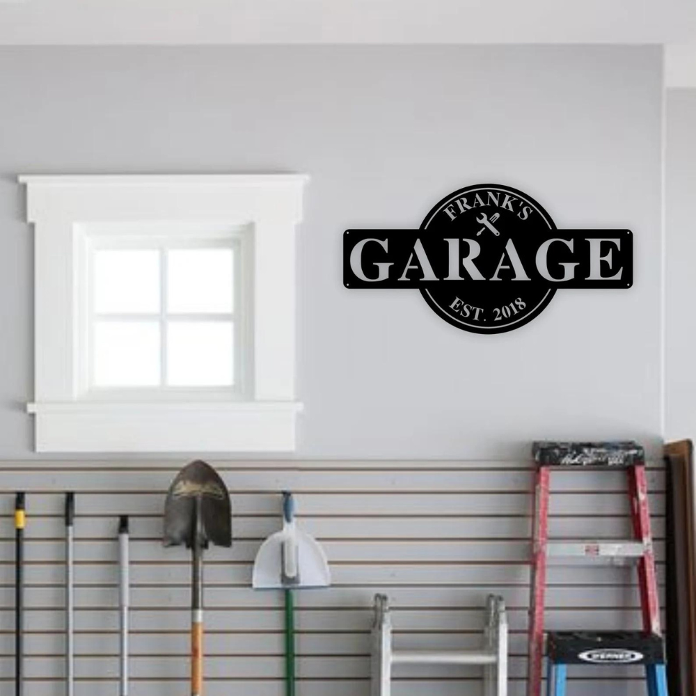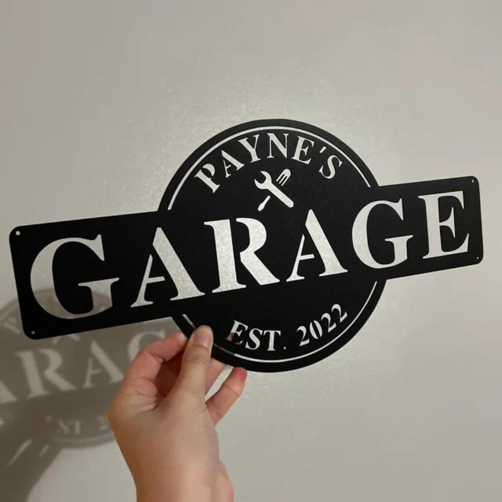 A beautiful custom sign that you can use to decorate your garage or workshop. Personalize it with a name, which makes it perfect for a birthday, christmas, father's day, valentines day, or even housewarming gift.
