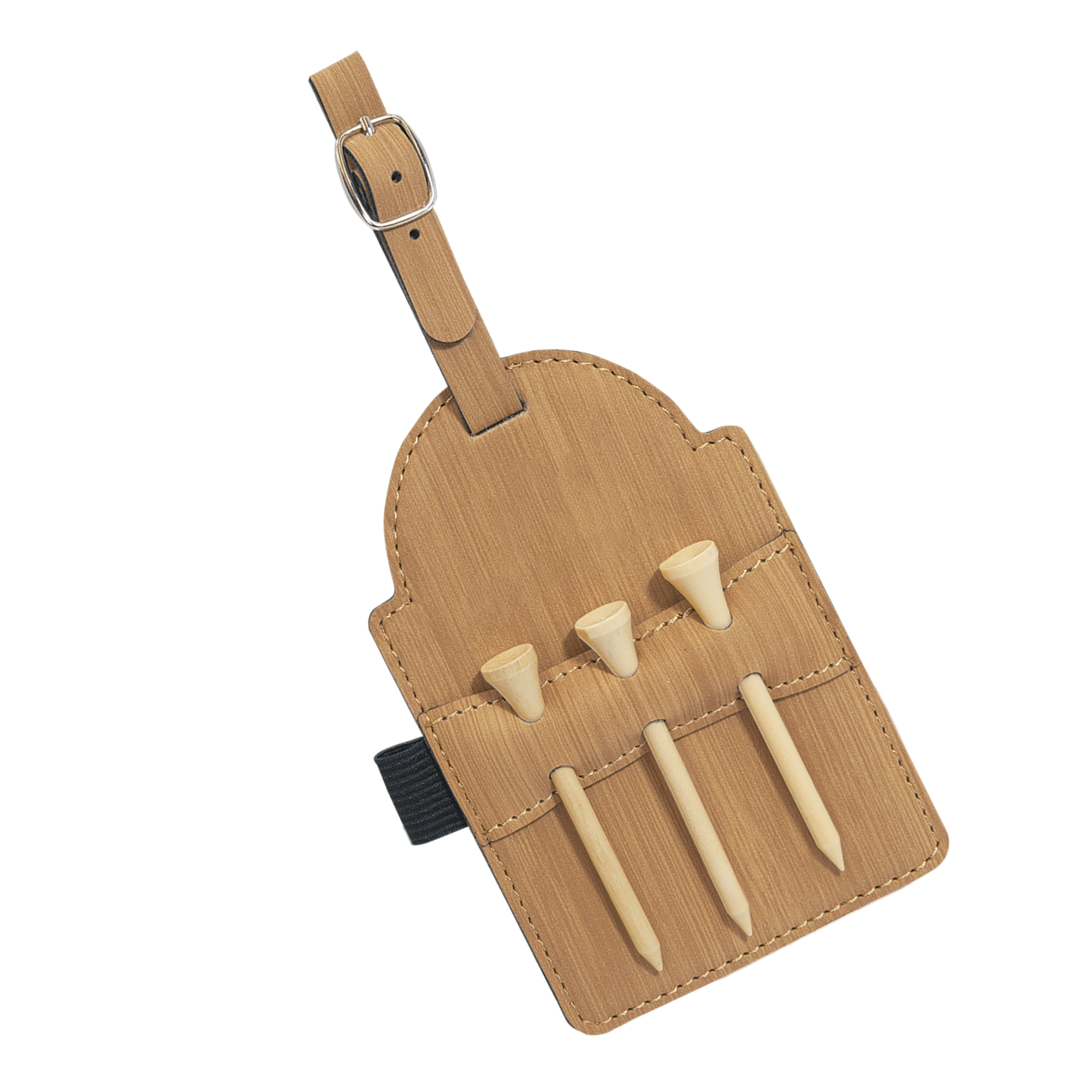 Crafted with care from high-quality synthetic vegan leather, our tee holder combines the luxurious look of genuine leather with a commitment to environmental sustainability. This faux leather not only exudes sophistication but also ensures long-lasting durability, capable of withstanding the demands of the golf course.
