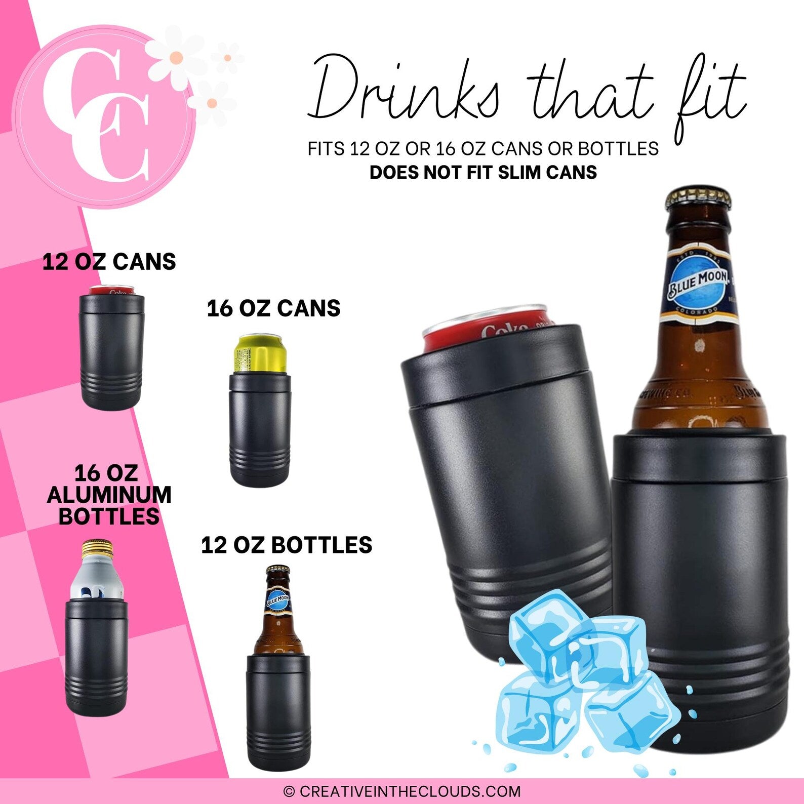 Holds 12 or 16 oz. cans or 12 oz. bottles