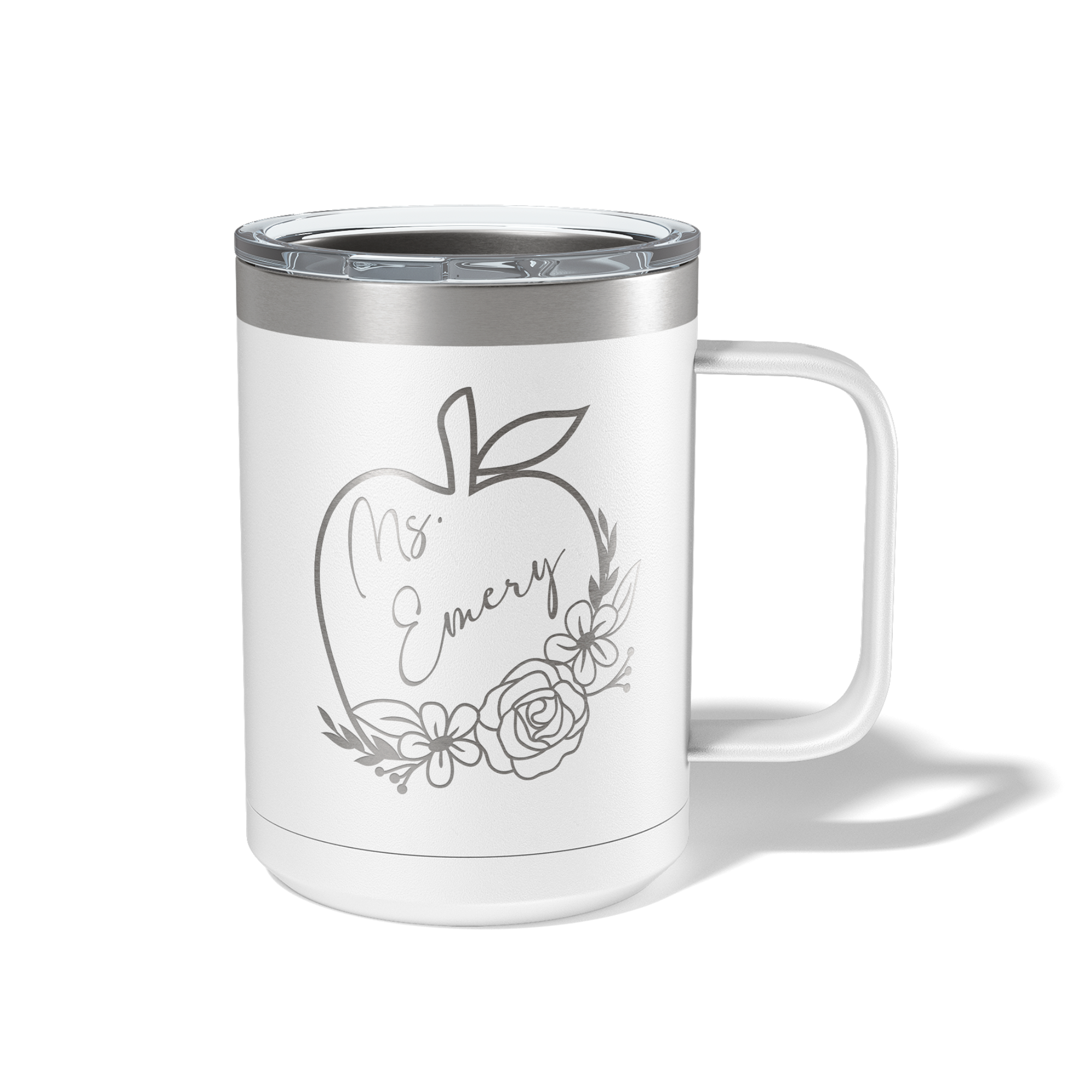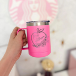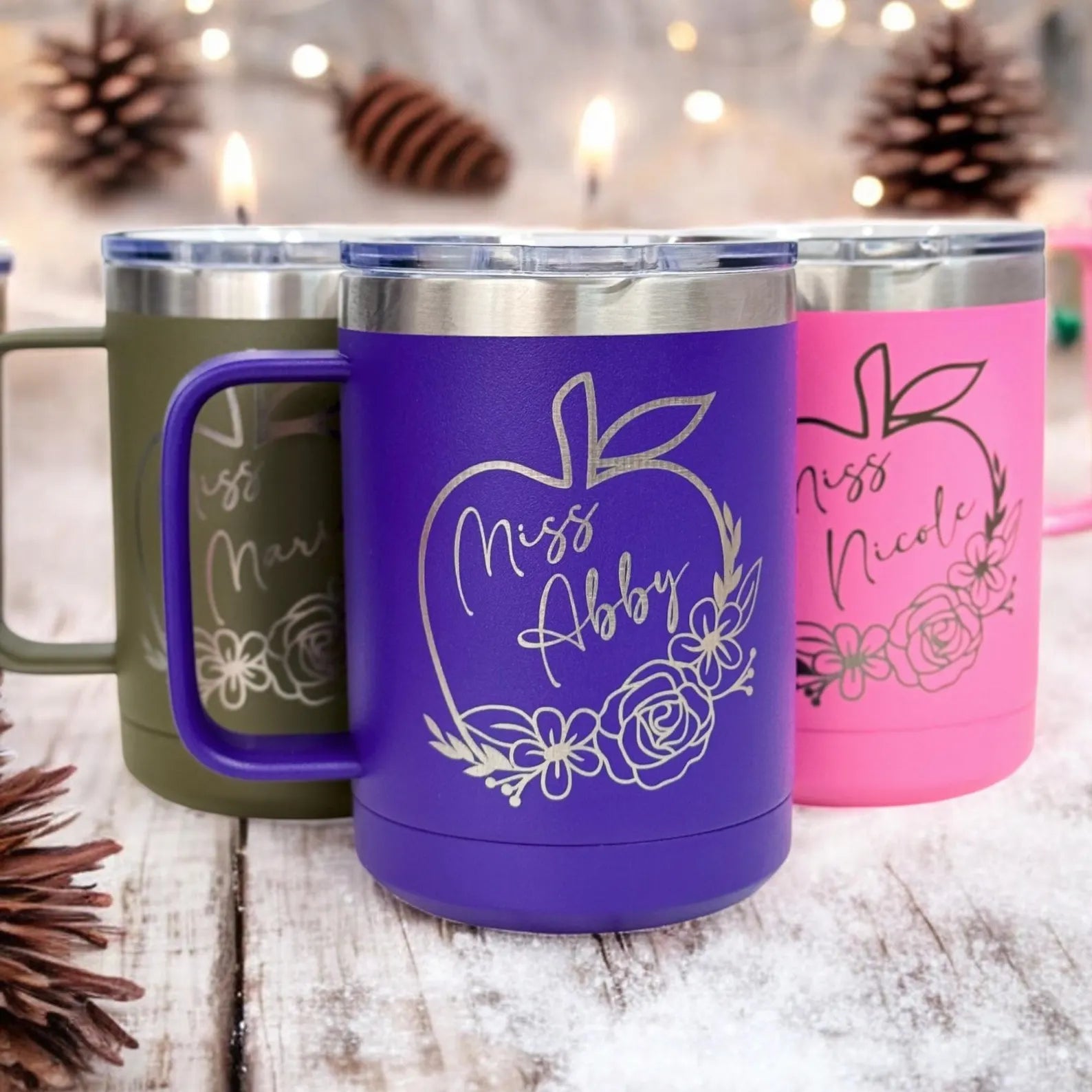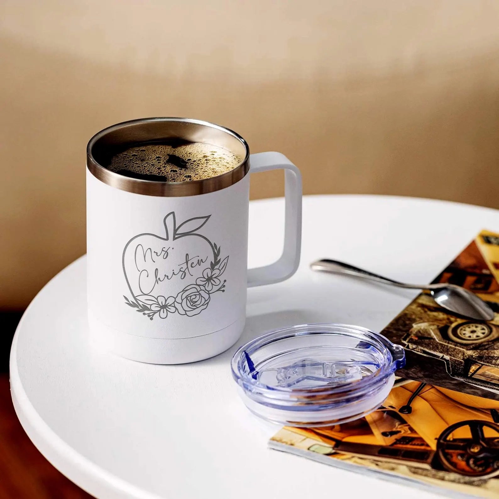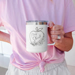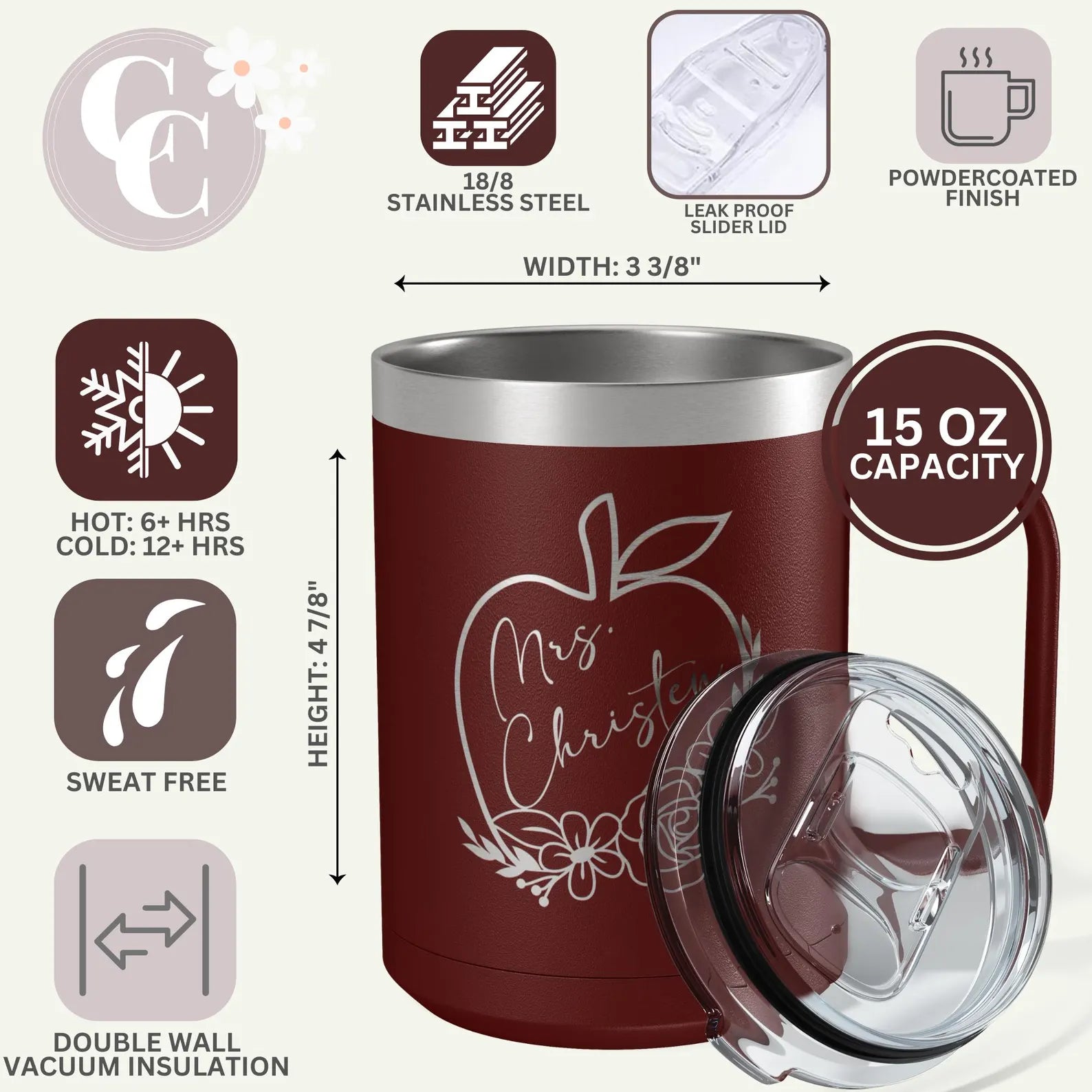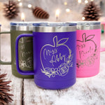 Personalized Teacher Floral Apple Insulated Coffee Camp Mug
