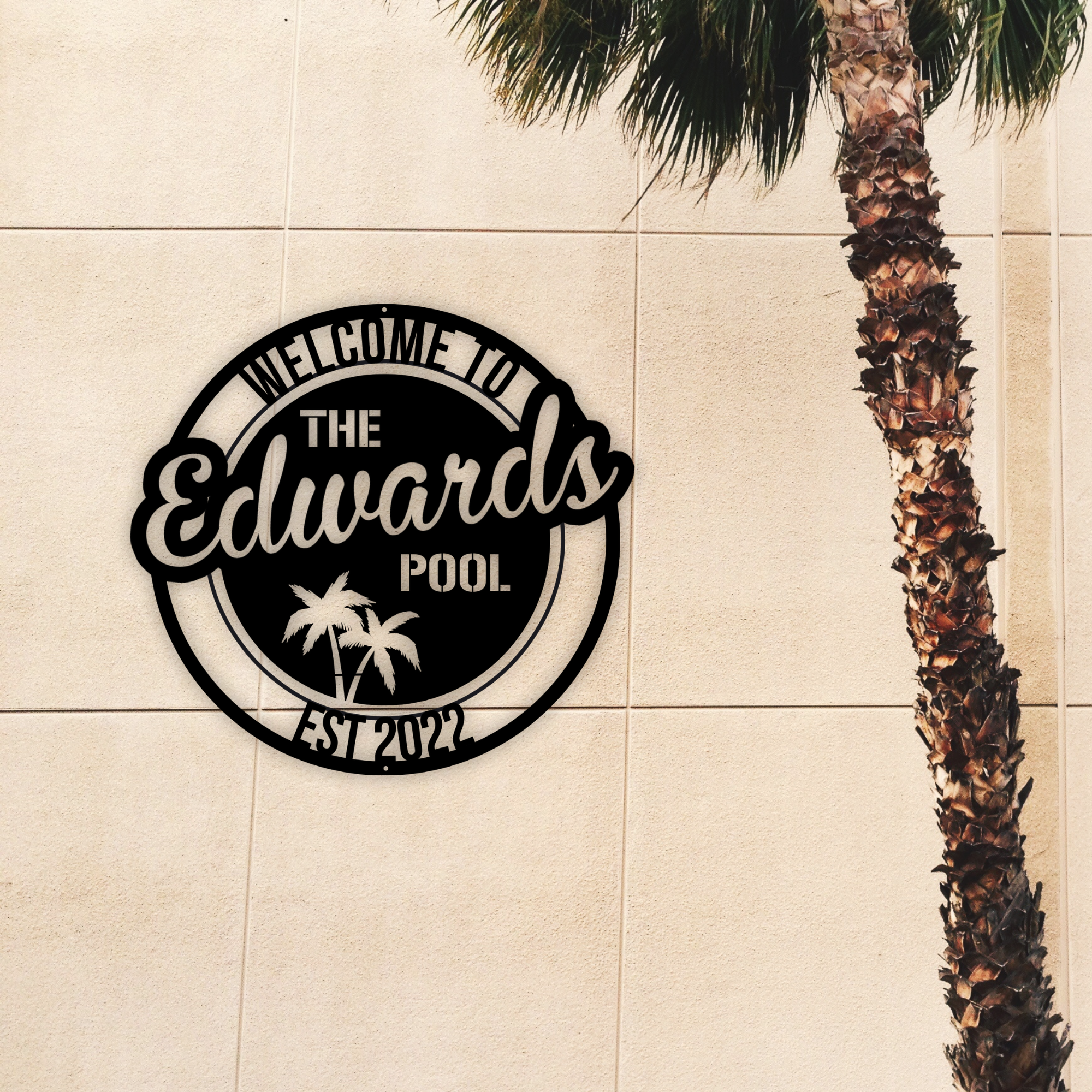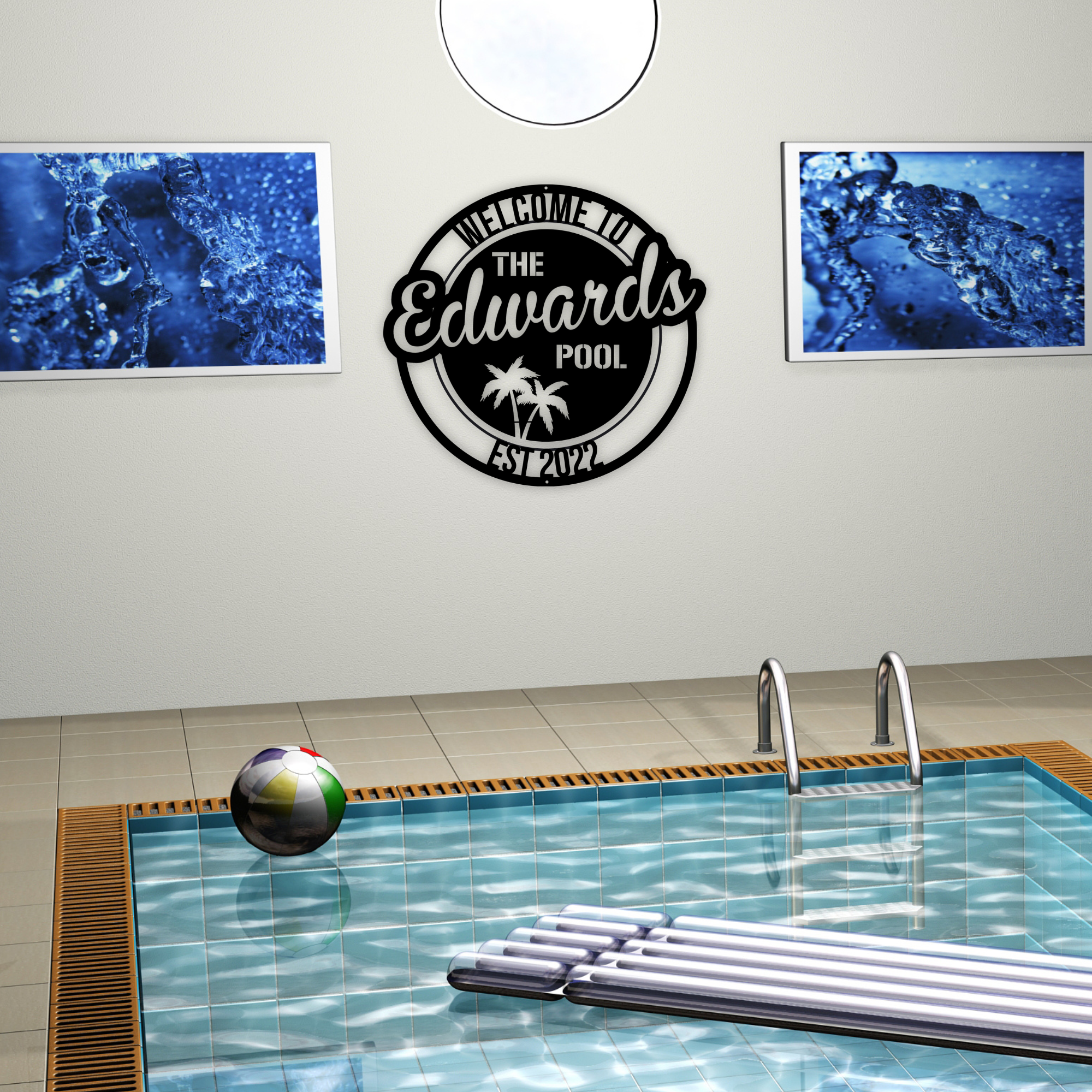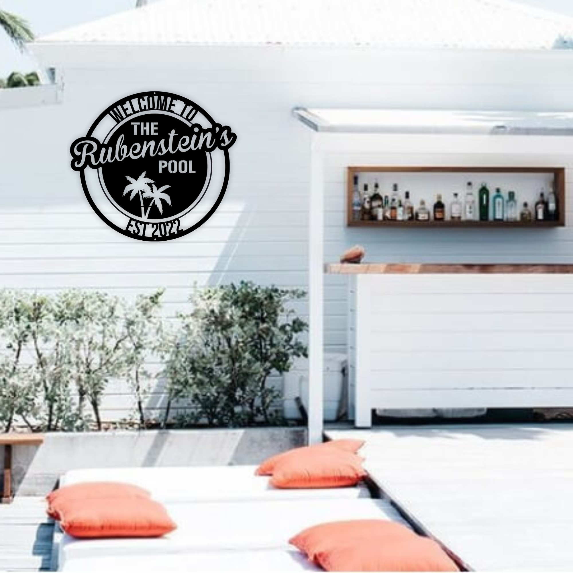 A beautiful custom sign that you can use to decorate your pool house or backyard. Personalize it with a family name, established year and more! Perfect for a housewarming gift.