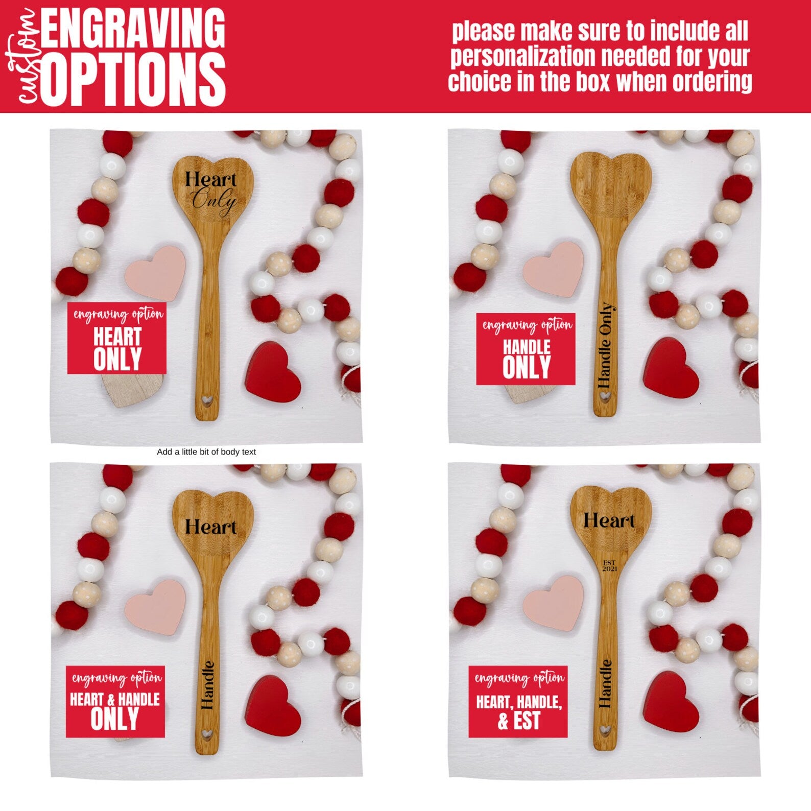 Engraving will differ on each spoon, as each piece of wood has different textures and grains.