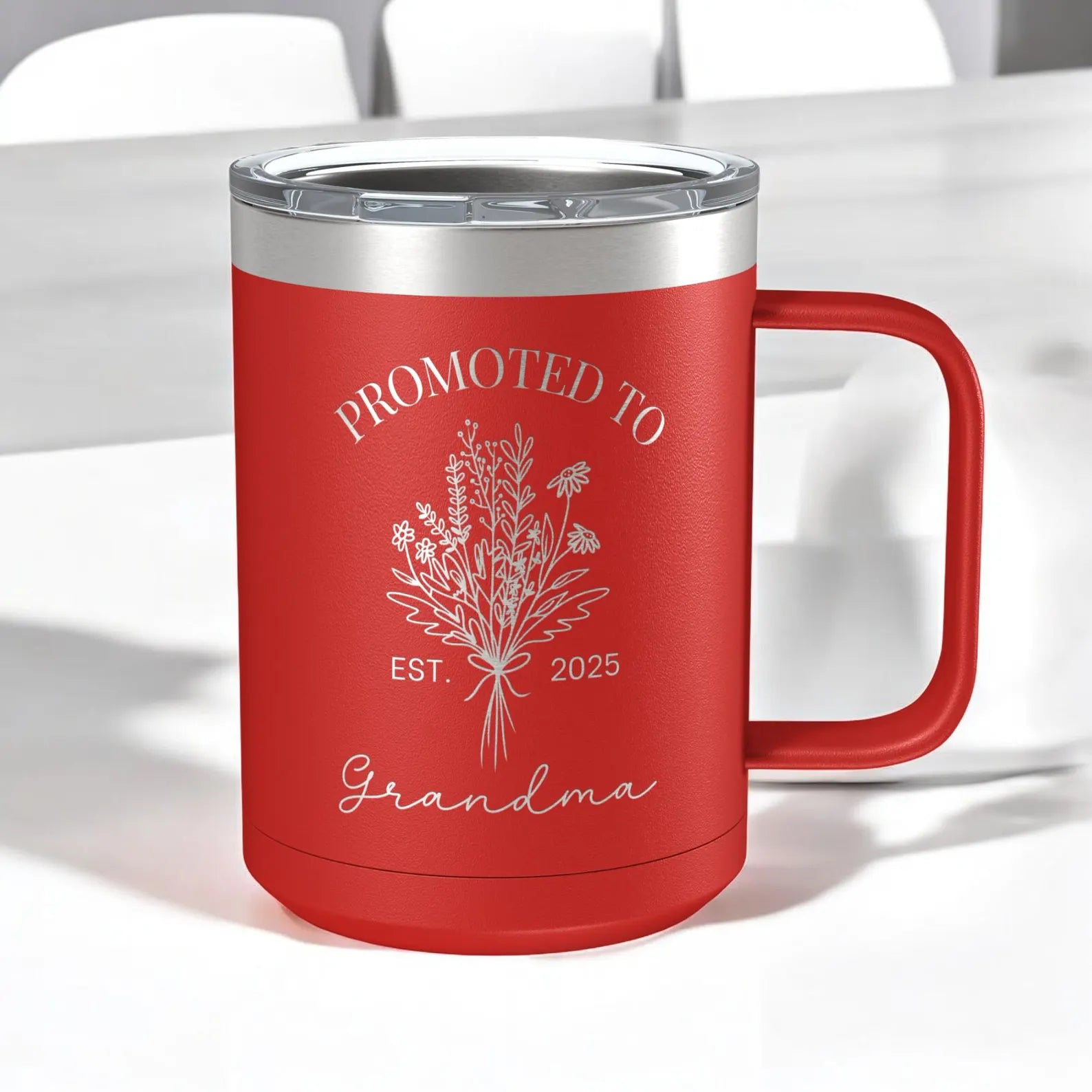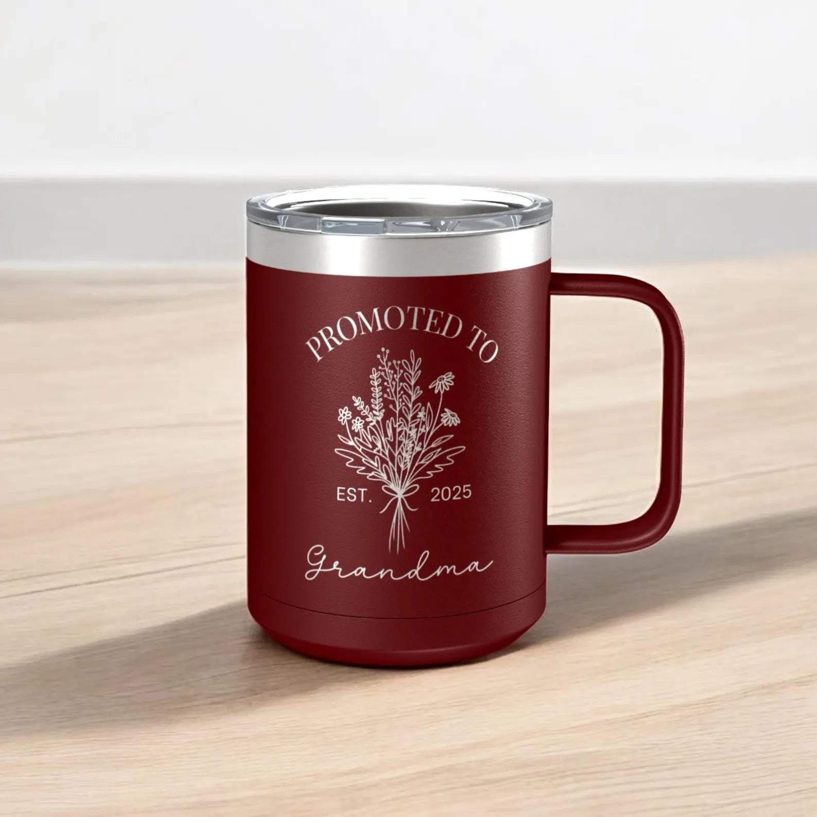 Custom Promoted to Grandma Insulated Coffee Camp Mug