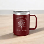 This personalized 15 oz travel coffee mug tumbler features an etched laser engraved design and a sturdy handle, making it easy to carry and perfect for any outdoor adventure. The coffee cup is made from high-quality stainless steel, ensuring it is durable and will last for years to come. This makes the PERFEECT gift for anyone!