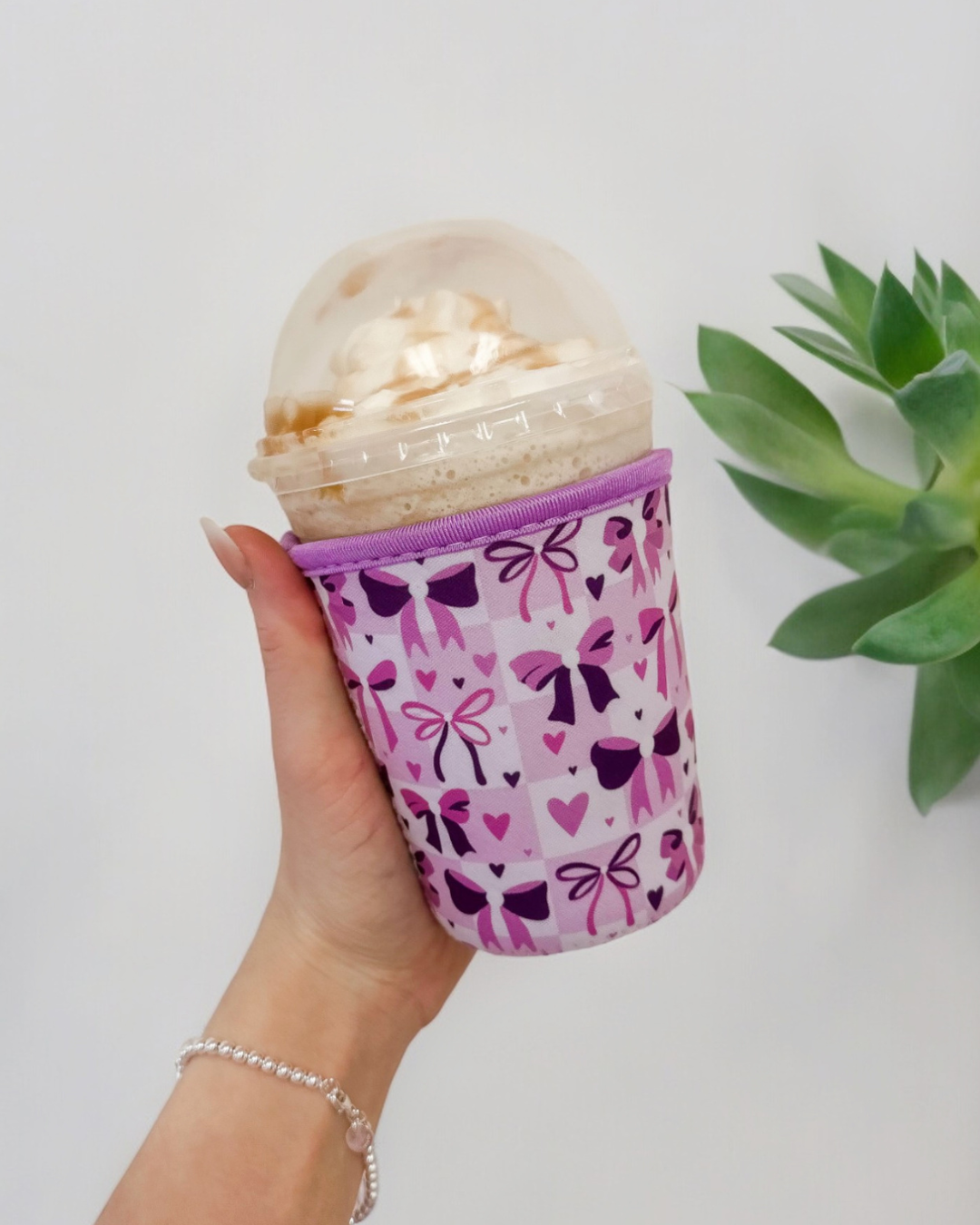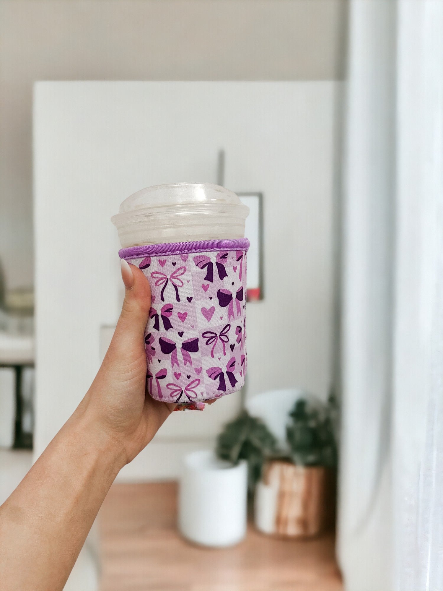 Purple Bows Insulated Drink Sleeve Coffee Coozie
