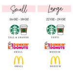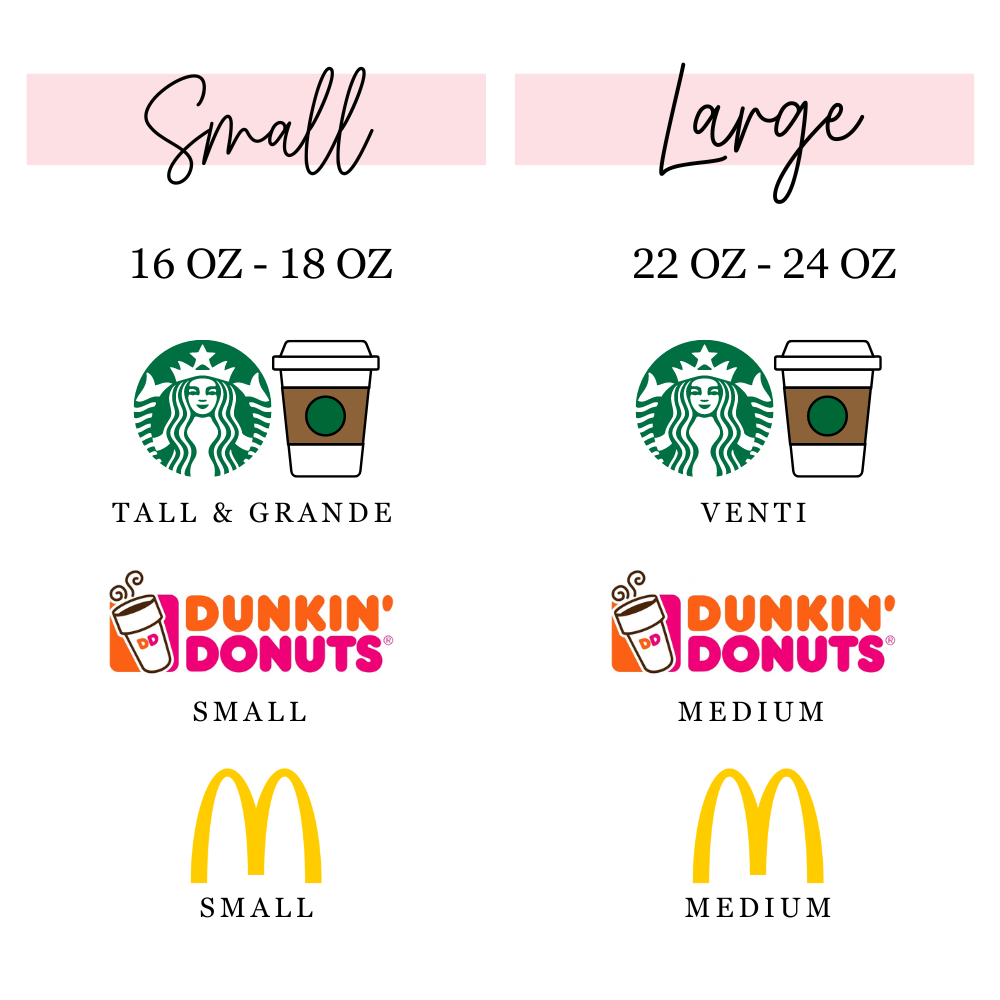 Tall and Grande at Starbucks, Small at Dunkin, and Small at Mcdonalds!