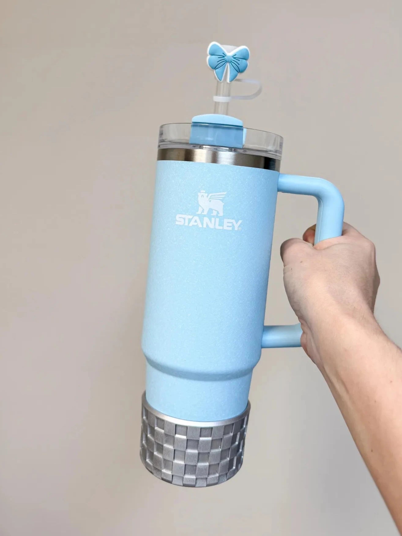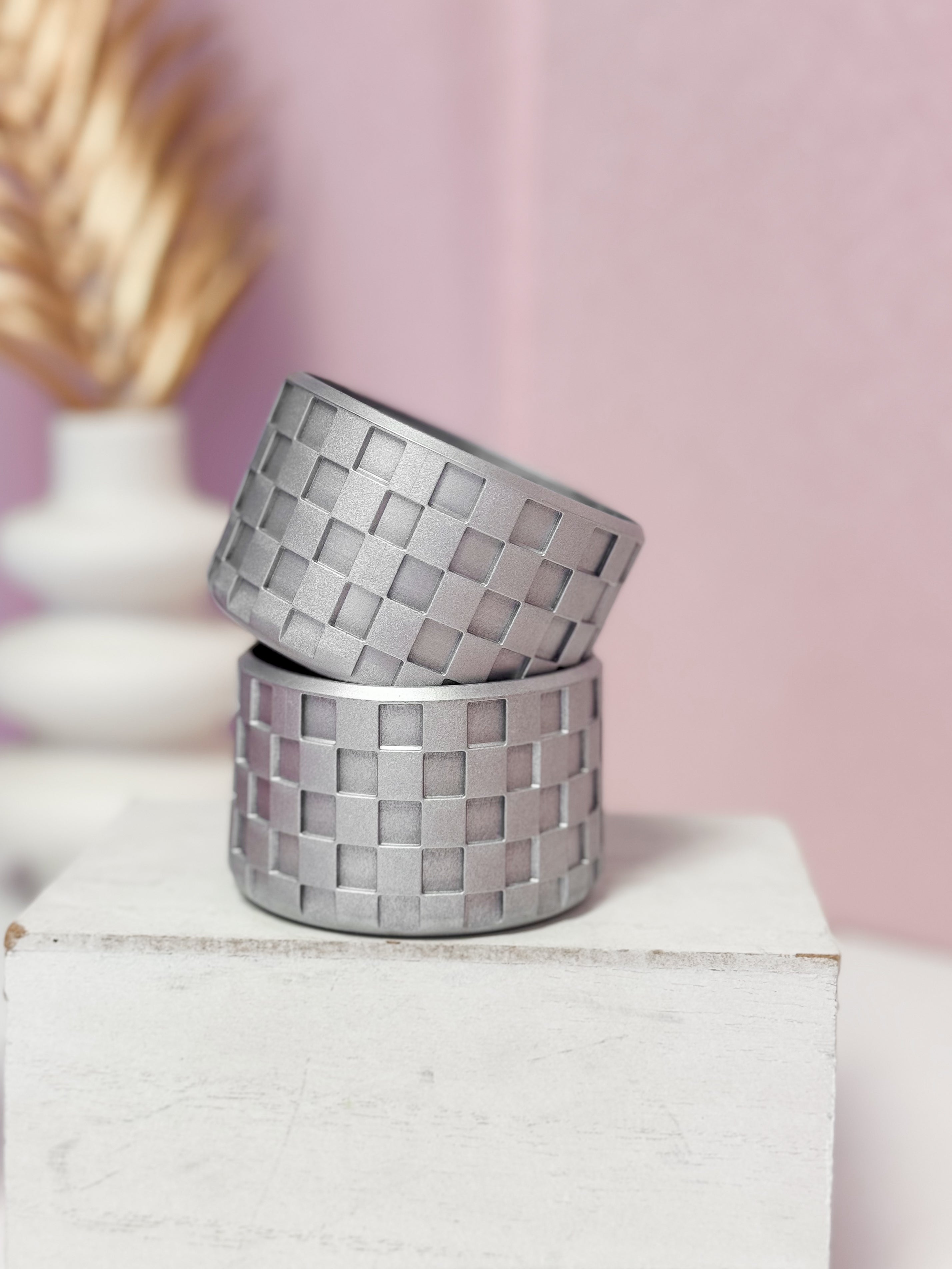 Silver Checkered Metallic Silicone Protective Boot for Tumbler