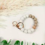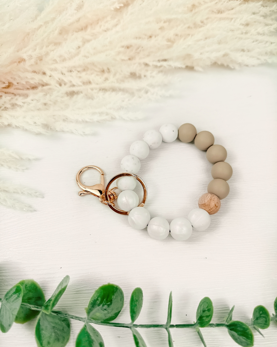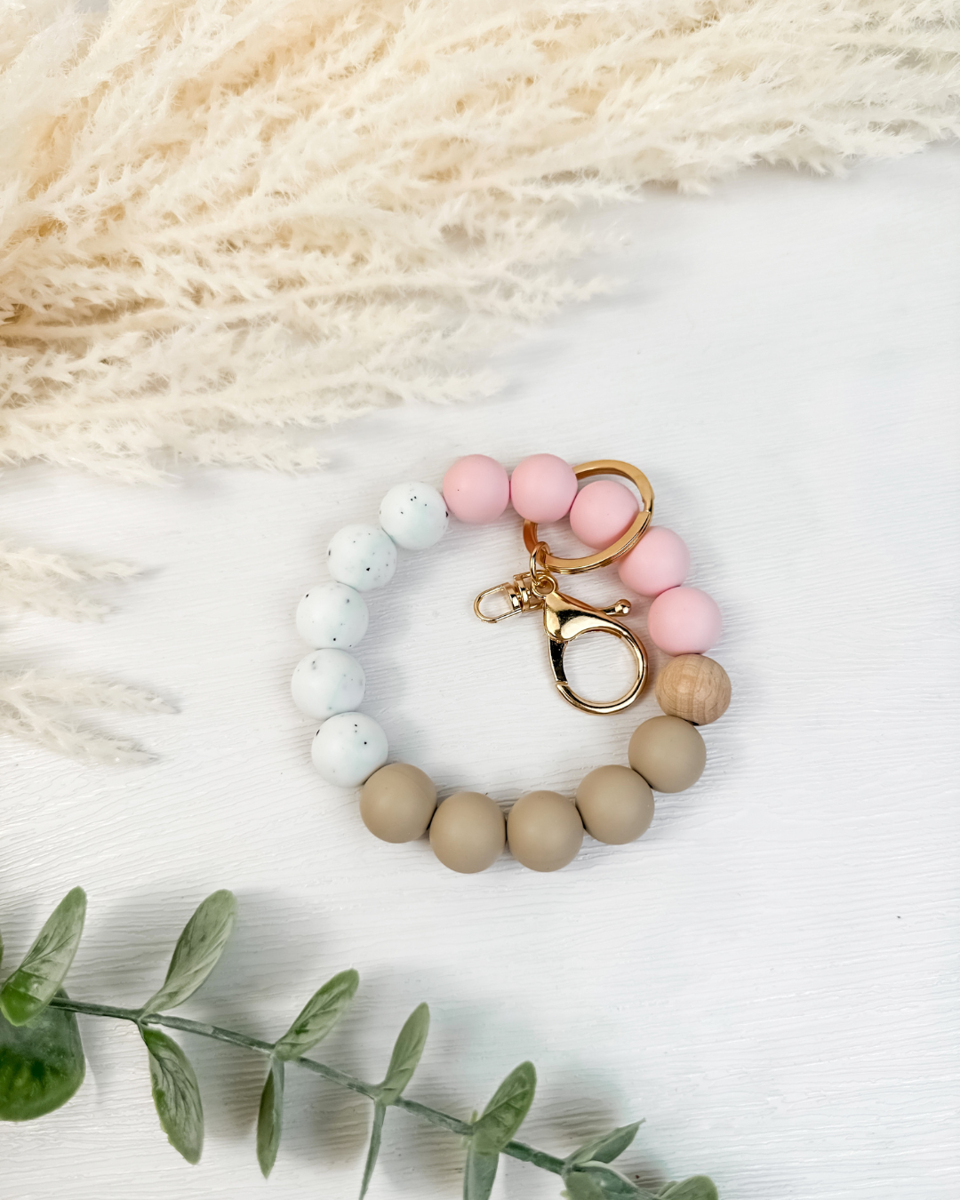 Our silicone beaded wristlets are not only fashionable, but versatile and practical. Whether you are pushing a cart while shopping in the mall, or have a ton of shopping bags in your hand, while not losing your house and car keys, you can do ALL the things with ease! The beads used in these wristlets are made from high-quality silicone, which is durable and resistant to wear and tear. The bracelet is designed to be worn around the wrist and is stretchable, making it easy to put on and take off.