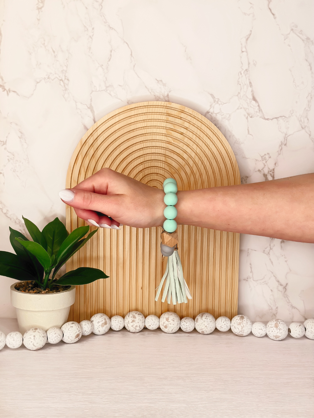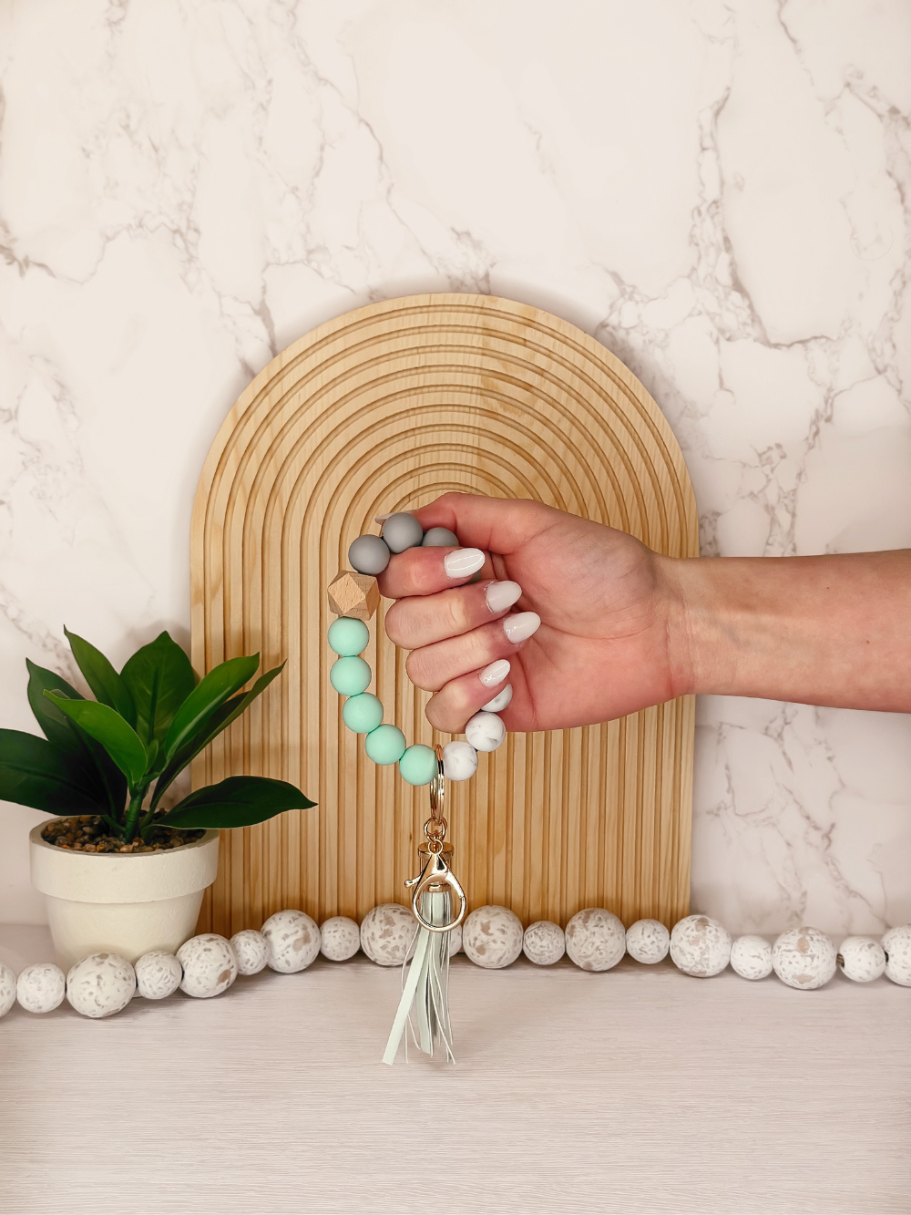 Our silicone beaded wristlets are not only fashionable, but versatile and practical. Whether you are pushing a cart while shopping in the mall, or have a ton of shopping bags in your hand, while not losing your house and car keys, you can do ALL the things with ease! The beads used in these wristlets are made from high-quality silicone, which is durable and resistant to wear and tear. The bracelet is designed to be worn around the wrist and is stretchable, making it easy to put on and take off.