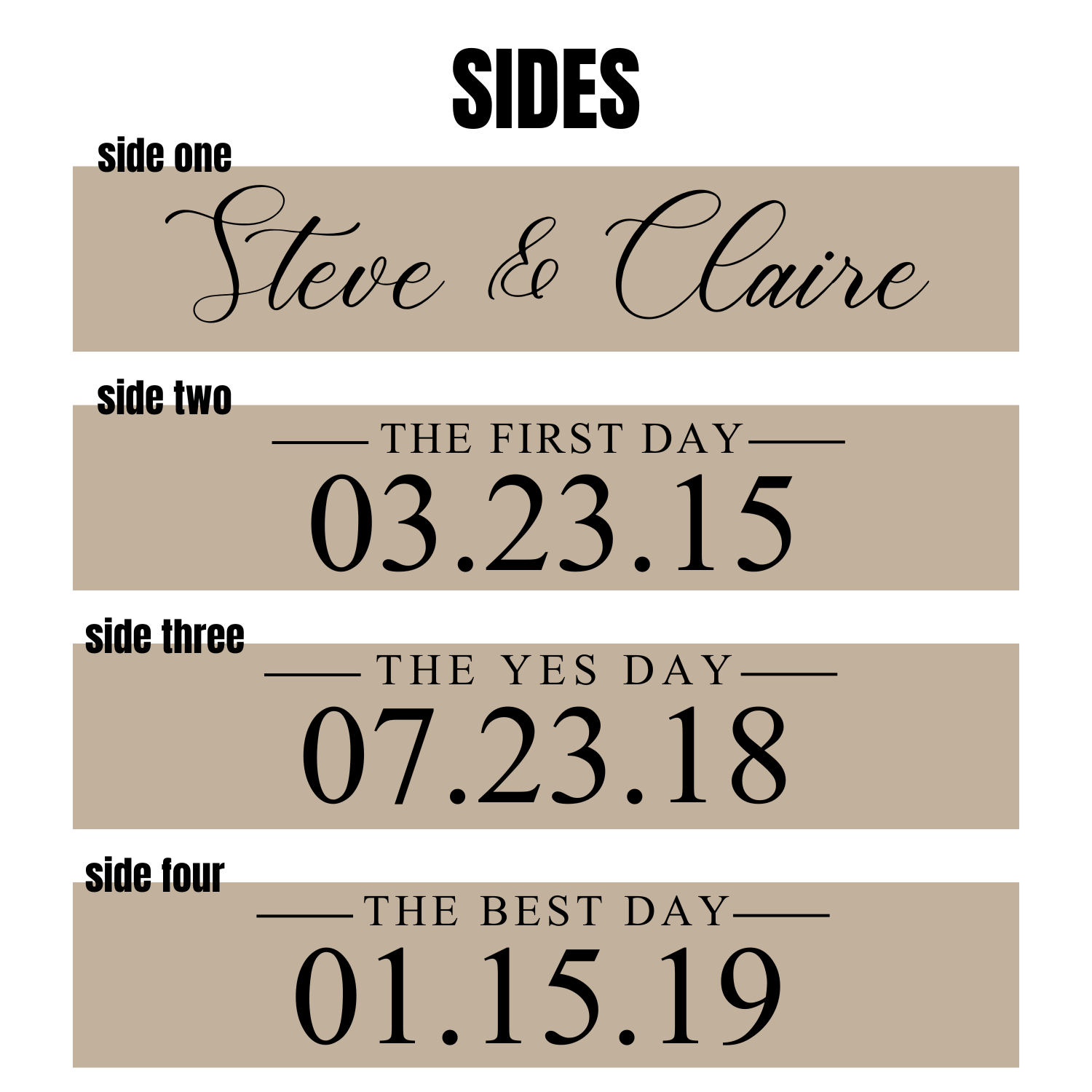 There are four sides to personalize.