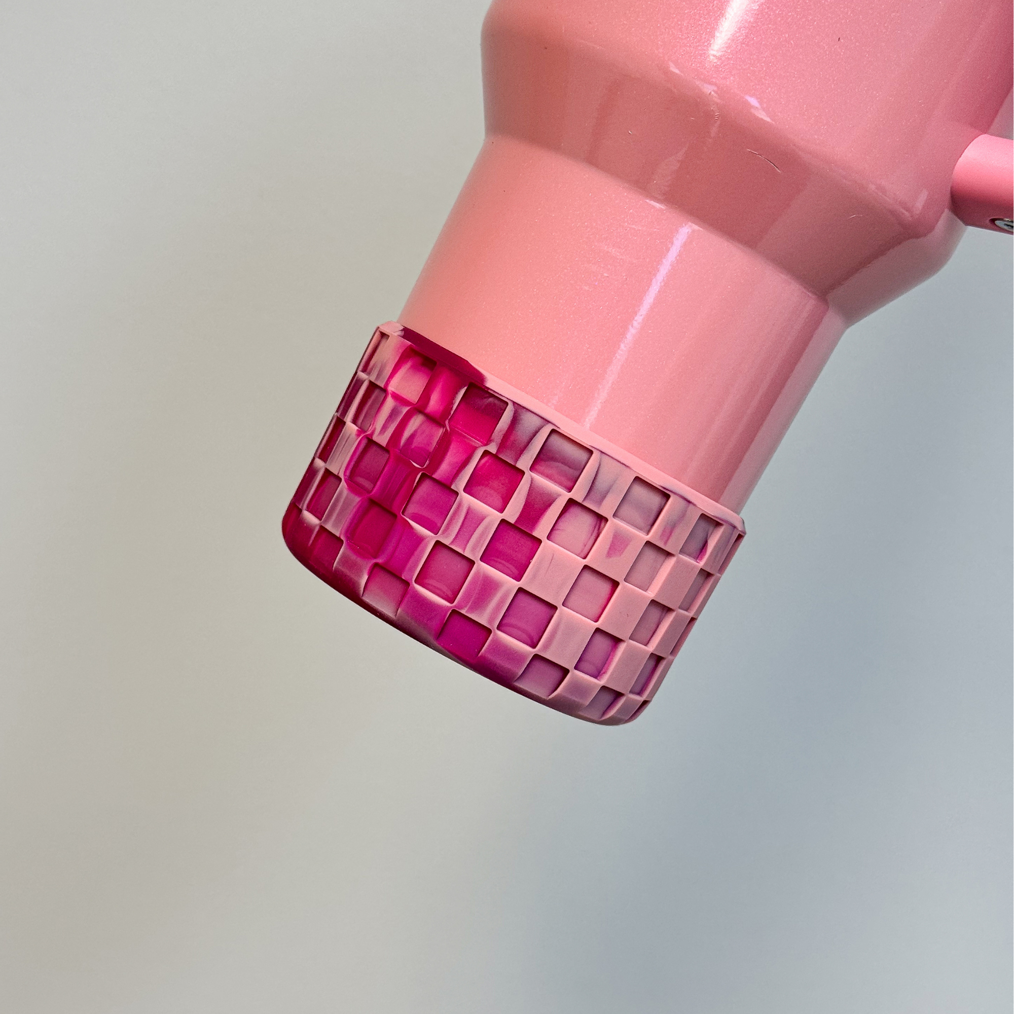 Winterberry Shimmer Pink Checkered Silicone Protective Boot for Tumbler