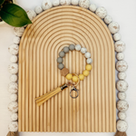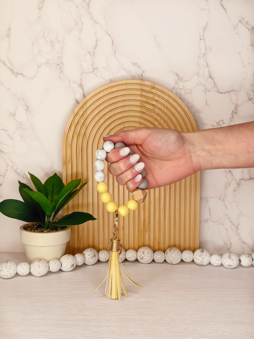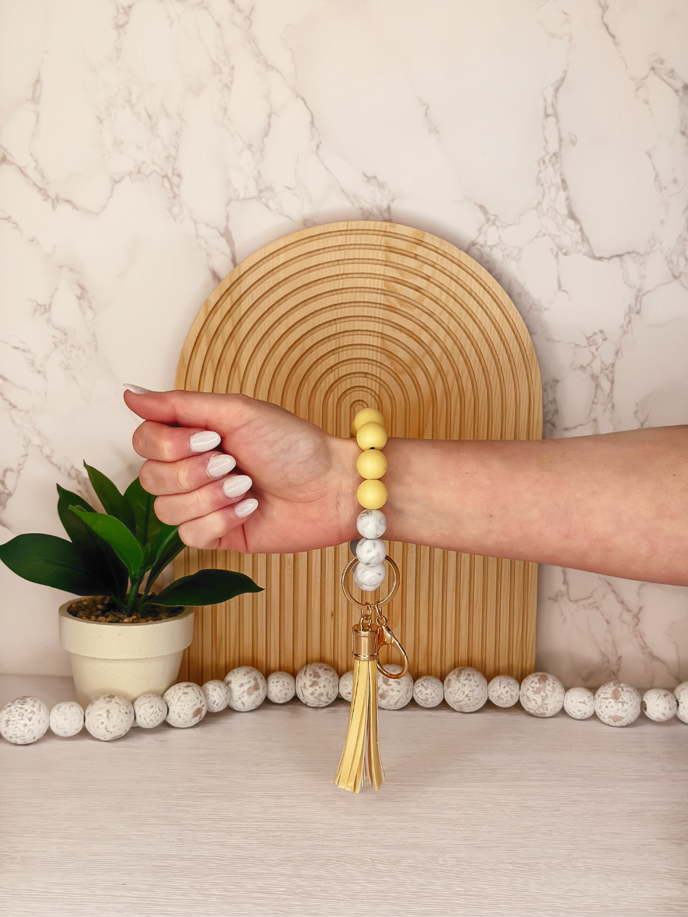 Our silicone beaded wristlets are not only fashionable, but versatile and practical. Whether you are pushing a cart while shopping in the mall, or have a ton of shopping bags in your hand, while not losing your house and car keys, you can do ALL the things with ease! The beads used in these wristlets are made from high-quality silicone, which is durable and resistant to wear and tear. The bracelet is designed to be worn around the wrist and is stretchable, making it easy to put on and take off.
