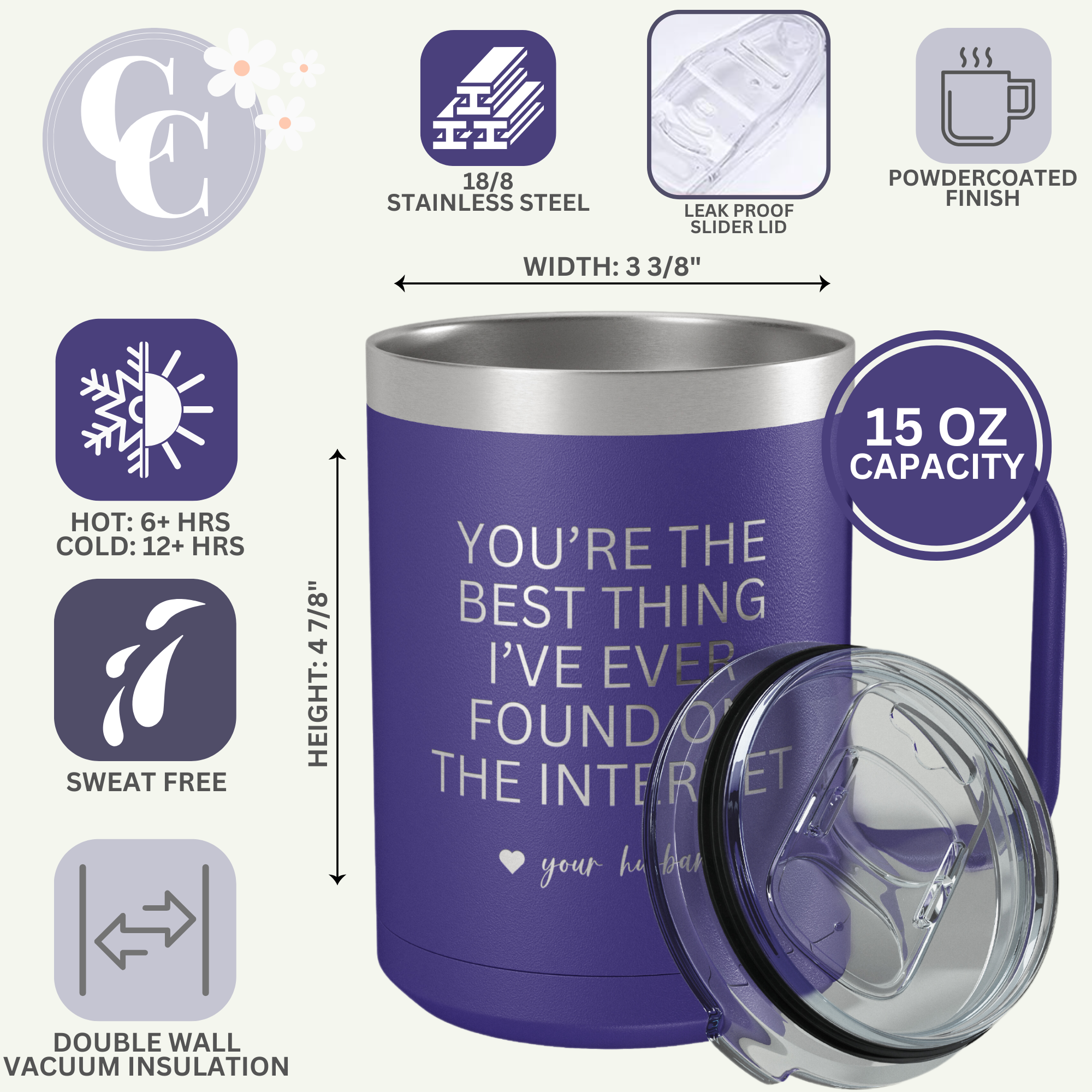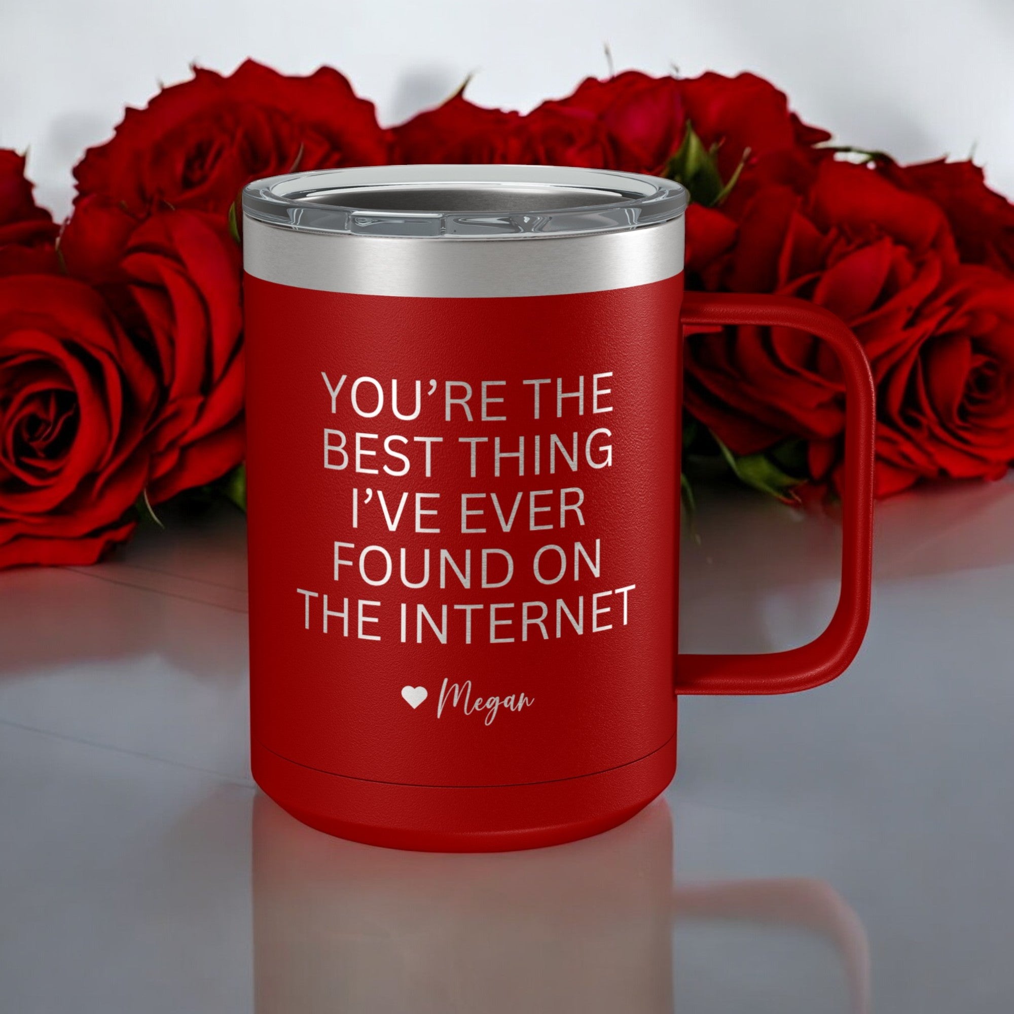 You're The Best Thing I've Ever Found On The Internet Personalized Insulated Coffee Camp Mug, Funny Valentine's Day Gift